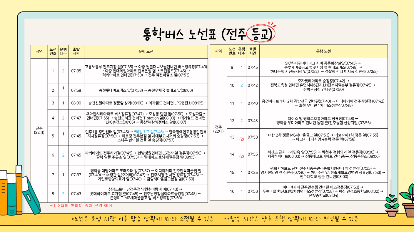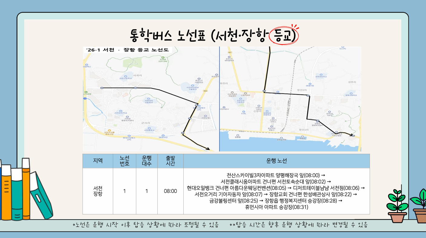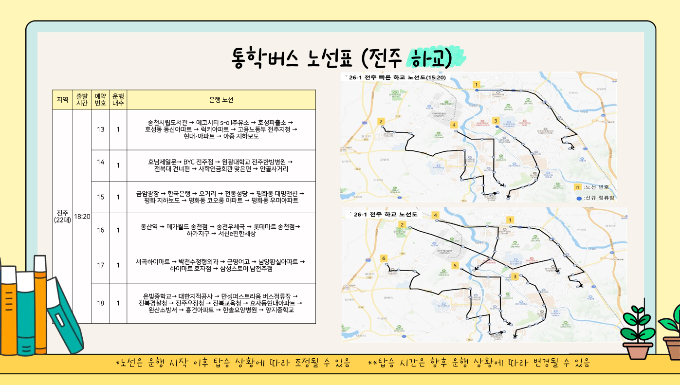 ※노선과 탑승 시간은 정기신청 내용에 따라 변경될 수 있습니다.