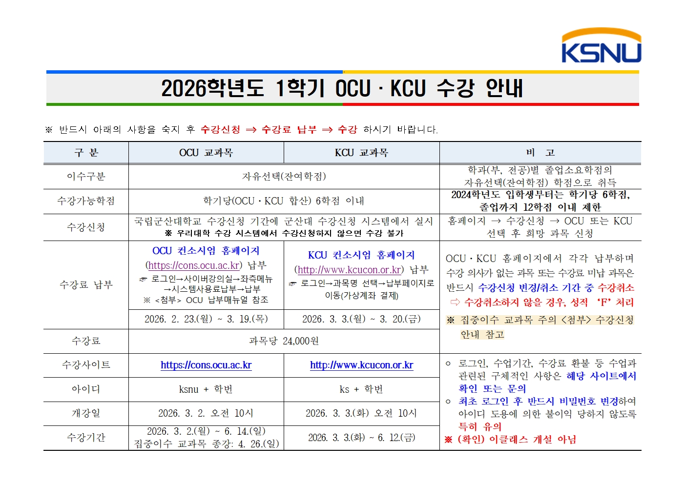 붙임 1. 2026학년도 1학기 OCU 컨소시엄 수강신청 안내 자료 1부.