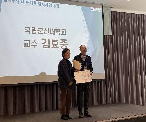 국립군산대학교 생명과학과 김효중 교수(외래생물관리기술개발센터장)가 12월 10일 부산 시티호텔에서 열린 감염병 매개체 유공자 포상 행사에서 질병관리청장 표창장을 수상하였다. 이번 수상은 김 교수가 기후변화 시대에 증가하는 감염병 위험에 대응하기 위해 매개체 감시·분석 연구를 지속적으로 수행하고, 국가 감염병 관리체계 강화에 기여한 공로를 인정받은 결과다. 김 교수는 그동안 기후변화 매개체 감시 거점센터 및 해외협력사업 자문·평가위원으로 활동하며 국가적 감시체계 구축에 기여해 왔다. 또한 질병관리청이 추진하는 매개체 분석 관련 용역 평가 및 기술 검토를 수행하고, SFT...