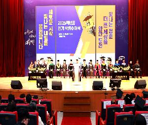 국립군산대학교는 2026년 2월 20일 교내 아카데미홀에서 ‘제44회 2025학년도 전기 학위수여식’을 개최해 학사 1,100명, 석사 105명, 박사 82명 등 총 1,287명에게 학위를 수여하였다. 학위수여식에는 졸업생과 가족, 교직원, 재학생 등 약 1,500여 명이 참석해 졸업생들의 새로운 출발을 진심으로 축하하는 뜻깊은 자리가 되었다. 이날 행사에서 엄기욱 총장 직무대리는 “여러분이 어디에 있든 어떤 선택을 하든, 도전하는 모든 순간을 응원하며, 국립군산대학교 이름으로 당당히 힘차게 세상에 나서길 바란다.”고 졸업생들에게 따뜻한 응원을 보...