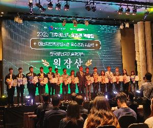 국립군산대학교 전북지역에너지클러스터인재양성사업단은 지난 10월 16일(목), 서울 양재 엘타워에서 진행된 「2025 기후에너지 일자리 박람회」의 에너지 인력양성 우수성과 시상식에서 조선해양공학과 전해명박사(지도교수 노재규)가 한국에너지기술평가원장상을 수상했다고 밝혔다. 「2025 기후에너지 일자리 박람회」는 △채용상담관▲에너지혁신인재포럼△일자리커넥트로 구성되어 참가자들을 대상으로 에너지 분야 채용 관련 정보와 취업 기회를 한자리에서 확인할 수 있는 프로그램들로 운영되었다. 에너지 인력양성 우수성과 시상식은 본 박람회 ▲에너지혁신인재포럼의 일환으로 진행되...