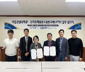 국립군산대학교는 10월 16일 목요일 한국화학융합시험연구원(KTR)과「상호 협력 강화를 위한 업무협약(MOU)」을 체결하였다고 밝혔다. 이번 협약식에는 국립군산대학교 장민석 산학협력단장, 심중표 교수(화학공학과), 이상규 교수(이차전지에너지학부)가 참석하였고, 한국화학융합시험연구원(KTR) 측에서는 김미성 본부장(이차전지에너지본부), 권기진 센터장(전력에너지센터), 곽일우 연구원(전력에너지센터)이 참석하여 양 기관 간 실질적 협력 방안을 논의하였다. 지역 내 수소 및 에너지산업의 지속 가능한 성장 기반 마련 및 협력 활동을 통한 이차전지 부트캠프 및 전...