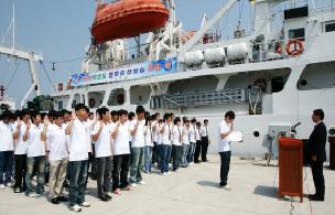 군산대학교 해양과학대학 학생 100여명이 6월 18일(목) 오전 10시 30분 군산 역무선부두에서 이희연 총장 및 김종연 해양과학대학 학장, 교직원들이 참여한 가운데 출항식을 갖고 한 달 간 “2009학년도 원양승선실습”에 나섰다. 원양승선실습의 목적은 학생들이 실제 원양해역에서 항해와 어업 및 선박기관에 관한 종합적인 실무지식을 습득하여 해기사로써의 자질을 갖추는 데 있다. 총톤수 1,057톤(국제톤수 1,424) 전장 70m, 선폭 12m인 해림호에 승선해서 7월 17일까지 30일 동안 원양승선실습을 할 학생들은 해양생산학과와 동력기계시스템공학과 3,4학년 학생들이다....
