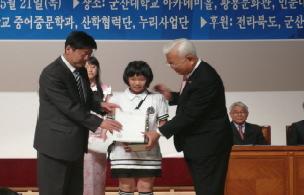 중어중문학과에서 주최하고 중국천진사회과학원과 중국로동대학이 주관한 “제 7회 전국 초등학생 중국어 구연 한마당”이 지난 21일 군산대학교 아카데미홀과 황룡문화관에서 열렸다. 중국어 구연 한마당은 2003년부터 해마다 열리며 전국 초등학생들의 중국어 구사능력 향상에 기여해왔는데, 이번 7회 대회에는 초급 154명, 중급 104명, 고급 39명 등 300여명의 학생이 참가했다. 이 대회에는 해마다 중국인 교수들이 초빙돼 심사를 맡아왔는데 이번 대회에도 손정(로동대학), 단정(로동대학), 호효청(로동대학), 허국선(로동대학), 이방(천진외대), 마화(천진사회과학원), 소걸(복단대...