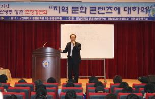 김명곤 전 문화관광부장관이 4월 8일 오후 3시 군산대학교 문화사상연구소와 유럽미디어문화학과, 인문과학연구소가 공동주최한 김명곤 (전)문화관광부장관 초청강연이 4월 8일(수) 오후 3시 군산대학교 황룡문화관 황룡문화홀에서 열렸다. 김명곤 (전)문화관광부장관은 극단 아리랑 단장, 연기자, 연출가, 대학교수 등 다방면에 걸쳐 활발한 활동을 했고, 1993년에는 영화 “서편제”를 통해 대중에게 널리 알려진 바 있다. 또한 2006년에는 제8대 문화관광부 장관을 역임했으며, 현재 전주세계소리축제 조직위원장(2009.3~ )을 맡고 있다. 2008년 11월 “지역의 문화유산 콘텐츠화 ...