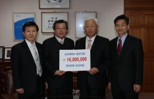 KB 국민은행 군산지점(지점장 최강일)이 군산대학교에 대학발전기금 1천만원을 기부했다. 이희연 군산대총장, 안홍섭 기획처장, 박창수 KB 국민은행 나운동 지점장 등이 참석한 가운데 3월 3일(화) 오후 3시 군산대학교 총장실에서 가진 전달식에서 최강일 국민은행지점장은 “새만금 중심대학으로 급성장하고 있는 군산대학교의 발전에 일조할 수 있어 기쁘다”고 말했다. 이에 이희연 총장은 “기탁금은 장학사업 및 교원연구 활동 지원 등 학교발전에 유익하게 쓰여질 것”이라고 감사의 뜻을 전했다.