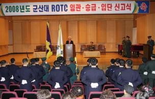 군산대학교 학군단(단장 중령 김병곤)에서는 2008년 2월 20월(수) 오후 2시 음악과 콘서트홀에서 ROTC생 및 학부모 등 300여명이 참석한 가운데 ROTC 임관.승급.입단 신고식이 있었다. 이번 입단하는 ROTC생은 31명이며, 4학년으로 승급하는 ROTC생은 28명이다. 1984년부터 금번까지 군산대학교에서 임관한 ROTC생은 570명에 이른다. 이자리에서 총장은 임관을 축하하며, 앞으로 대한민국 군에서 필요로 하는 훌륭한 장교가 되어 줄 것을 당부하였다. 임관한 ROTC생은 3월초에 해당 병과학교에 입교하여 6월말 수료 후 야전부대에서 소대원 지휘 및 관리 등 소대장으...