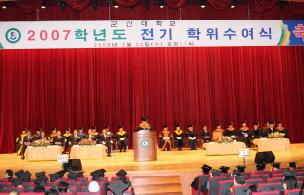 군산대학교(총장 이희연) 제26회 전기 학위수여식이 20일(수) 오전 11시 아카데미홀에서 졸업생 및 총장 등 보직자, 강봉균 총동문회장(국회의원), 문동신 군산시장, 백영식 기성회장 등이 참석한 가운데 개최되었다. 이번 학위수여식에는 학사 1,508명, 석사 111명, 박사 8명 총 1,627명에게 학위를 수여하였으며 강현욱(명예 철학박사) 전 도지사, 이창승(명예 경영학박사) 전 전주시장이 명예박사학위를 받았다. 이날 학위수여식에서 이희연 총장은 식사를 통해 “모교의 교문을 나서더라도 마음만은 항상 우리 대학 곁에 함께 하면서 군산대학이 하루가 다르게 성장하는 모습을 지켜봐 ...