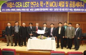 국립 군산대학교 산학협력단(김영호)은 지난 11월 19일(월) 오후 2시에 프랑스의 국립 원자력에너지 위원회인 CEA(Franch Atomic Energy Comission)와 학-연 협력을 위한 협약을 체결하고, 국제 공동 세미나를 개최하였다. 이번 협약식은 군산대학교의 산학협력단과 누리사업을 진행하고 있는 “텔레매틱스 인력양성 사업단”이 주최가 되어 프랑스의 대표적인 연구기관 중 하나인 CEA 산하에서 소프트웨어 및 지능형 시스템 당당 연구소인 LIST(Lab of Applied Research on Software - Intensive echnologies)와 함께 상호 인력...