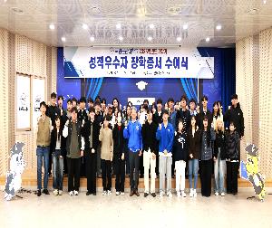 국립군산대학교(총장 직무대리 엄기욱)는 10월 27일(월) 대학본부 대회의실에서 ‘2025학년도 2학기 성적우수자 장학증서 수여식’을 개최했다. 이번 수여식에서는 총 53명의 성적우수 장학생이 선발되어 총 1,590만원의 장학금이 지급되었으며, 선정 대상은 학업 성적이 우수하고 소속 학과(부)장의 추천을 받은 3학년 재학생이었다. 엄기욱 총장 직무대리는 격려사를 통해 “학교생활에 충실하고 학업능력 향상을 위해 노력해온 여러분이 장학금 수여 대상자로 선정된 것은 매우 자랑스러운 일이다, 노력 위에 행운이 따른 여러분이 앞으로 더 크고 멋진 꿈을...