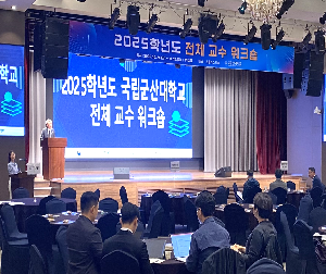 -AI 시대의 혁신과 소통을 논하다… 미래 교육·연구 방향과 대학의 비전 공유- 국립군산대학교(총장직무대리 엄기욱)는 2025년 10월 24일(금)부터 25일(토)까지 1박 2일간, 충남 예산군 덕산면 스플라스 리솜에서 ‘2025학년도 전체교수워크숍’을 성공적으로 개최하였다. 이번 워크숍에는 조교수 이상 전임교원 167명과 직원 13명 등 총 180명이 참가하여, 대학의 주요 정책과 발전 방향을 공유하고 구성원 간의 소통과 협력을 강화하는 시간을 가졌다. 행사는 나신혜 아나운서의 사회로 진행되었으며, 엄기욱 총장직무대리는 ...