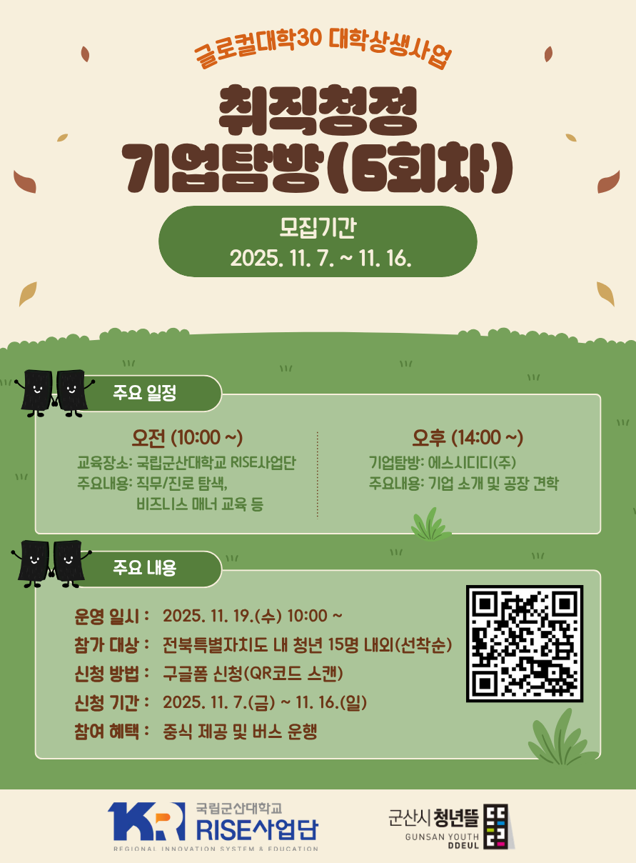 - 문의사항: 국립군산대학교 RISE사업단 기업지원팀 063)469-8907