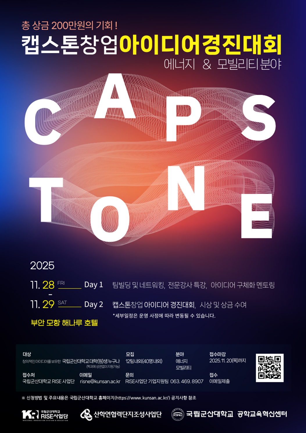 국립군산대학교 RISE사업단에서는 미래 모빌리티 및 에너지 분야 관련 학생들의 창의적인 아이디어 발굴을 유도하고