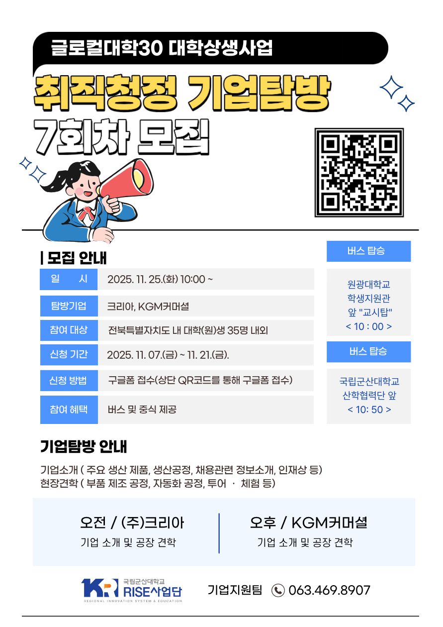 - 문의사항: 국립군산대학교 RISE사업단 기업지원팀 063)469-8907