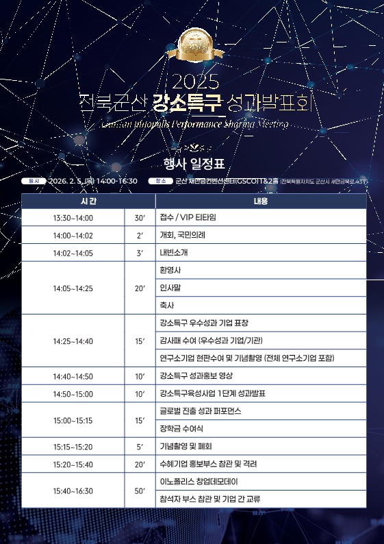 - 행 사 명: 2025 전북군산 강소특구 성과발표회