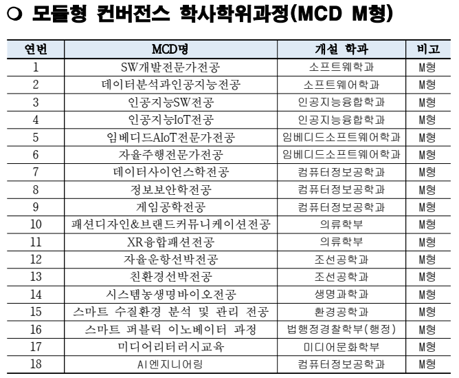 ▶ MCD 모집과정: 34개 과정 <붙임1 참고>