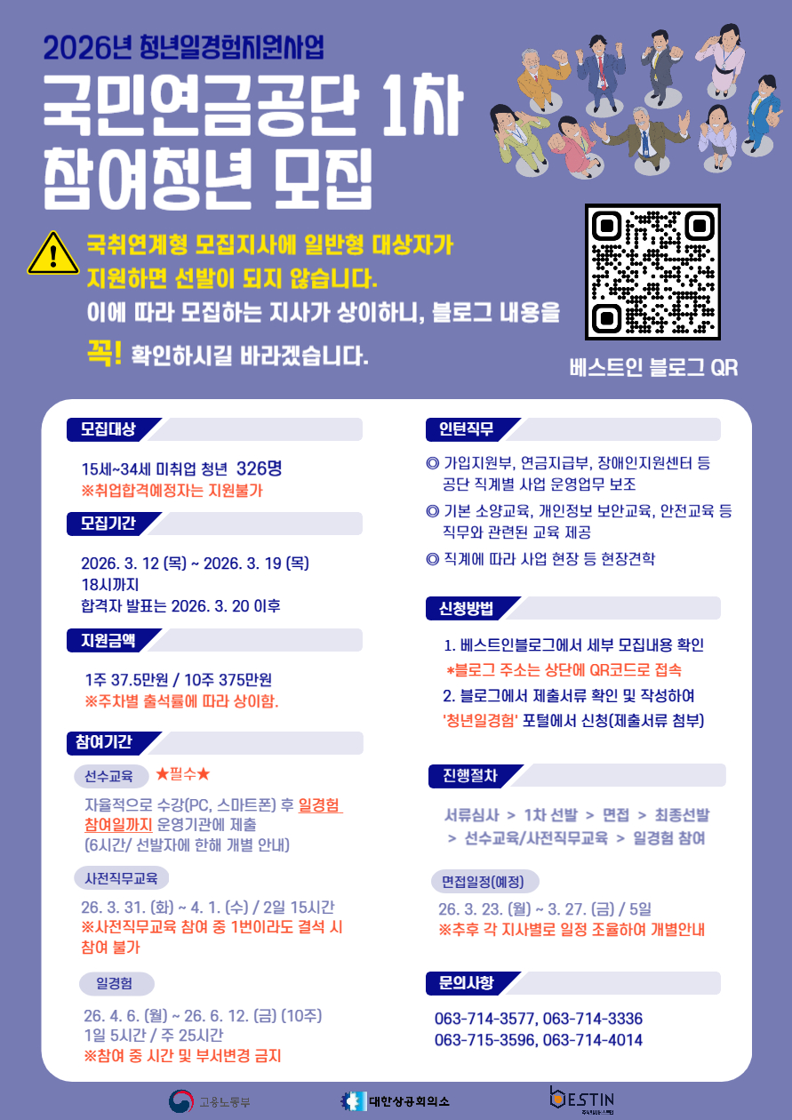 2. 전북 내 근무지는 국민취업지원제도 참여자만 지원이 가능합니다. 참고해서 신청부탁드립니다!