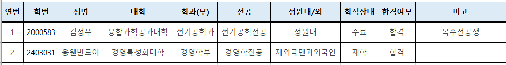 <졸업논문대체인정 신청자 결과>