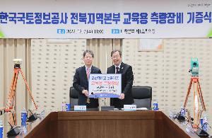 한국국토정보공사 전북지역본부가 7일 군산대학교 본부 제1소회의실에서 토탈스테이션, GNSS 측량장비 등 교육용 측량 장비를 다수 기증하였다. 전달된 기증물품은 토탈스테이션 5대, GNSS 측량장비 3대 등 4000만 원 상당의 현물이다. 전달식에는 군산대 이장호 총장, 주정훈 공과대학장, 토목공학과 김형주 교수, 토목공학과 이창경 교수, 한국국토정보공사 박종화 전북본부장, 이종락 홍보처장, 박민철 공간정보사업처장 등이 참석하였다. 이날 전달된 토탈스테이션은 거리와 연직각 및 수평각을 하나의 기계로 관측할 수 있는 장비이고, GNSS는 위성데이터를 수신하...