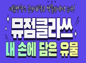★☆뮤점클라쓰☆★_내 손에 담은 유물 참가자 모집 # 대 상: 초등학생 3·4학년 (40명_오전반 20명, 오후반 20명) # 진행장소: 군산대학교박물관 교육실 # 진행일: 2022. 7. 16. ~ 7. 30. (매주 토요일) # 진행시간: 클라쓰A (오전반 10:30~12:00) 클라쓰B (오후반 13:30~15:50) # 체험비: 무료 # 신청방법: 네이버폼 링크 또는 QR 신청 ** 클라쓰A, 클라쓰B 확인 후 신청해주세요. 클라쓰A(오...