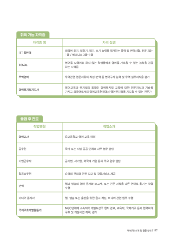 %uc9c1%uc5c5%uba85%uce6d %uc9c1%uc5c5%uc18c%uac1c%uc601%uc5b4%uad50%uc0ac %uc911%uace0%ub4f1%ud559%uad50 %uc601%uc5b4 %uad50%uc721 %ub2f4%ub2f9%uacf5%ubb34%uc6d0 %uad6d%uac00 %ub610%ub294 %uc9c0%ubc29 %uacf5%uacf5 %ub2e8%uccb4%uc758 %uc0ac%ubb34 %uc5c5%ubb34 %ub2f4%ub2f9%uae30%uc5c5%uadfc%ubb34%uc790 %uacf5%uae30%uc5c5, %uc0ac%uae30%uc5c5, %uc678%uad6d%uacc4 %uae30%uc5c5 %ub4f1%uc758 %uc8fc%uc694 %uc5c5%ubb34 %ub2f4%ub2f9%ud56d%uacf5%uc2b9%ubb34%uc6d0 %uc2b9%uac1d%uc758 %ud3b8%uc758%uc640 %uc548%uc804 %ub3c4%ubaa8 %ubc0f %uac01%uc885%uc11c%ube44%uc2a4 %uc81c%uacf5%ubc88%uc5ed %uc6f9%uacfc %ubc29%uc1a1%uc758 %uc601%uc5b4 %ubb38%uc11c%uc640 %ubcf4%uace0%uc11c, %ub610%ub294 %uc804%ubb38 %uc11c%uc801%uc744 %ub2e4%ub978 %uc5b8%uc5b4%ub85c %uc62e%uae30%ub294 %uc791%uc5c5 %uc218%ud589%ubbf8%ub514%uc5b4 %uc885%uc0ac%uc790 %uc6f9, %ubc29%uc1a1 %ub610%ub294 %ucd9c%ud310%uc744 %uc704%ud55c %uc6d0%uace0 %uc791%uc131, %ubbf8%ub514%uc5b4 %uad00%ub828 %uc5c5%ubb34 %uc218%ud589%uad6d%uc81c%uad6c%ud638%uac1c%ubc1c%ud65c%ub3d9%uac00 NGO%ub2e8%uccb4%uc5d0 %uc18c%uc18d%ub418%uc5b4 %uac1c%ubc1c%ub3c4%uc0c1%uad6d %ud604%uc9c0 %uad00%ub8cc, %uad50%uc721%uc790, %uad6d%uc81c%uae30%uad6c %ub4f1%uacfc %ud611%ub825%ud558%uc5ec %uad6c%ud638 %ubc0f %uac1c%ubc1c%uc0ac%uc5c5 %uacc4%ud68d, %uad00%ub9ac %uc878%uc5c5 %ud6c4 %uc9c4%ub85c%ucde8%ub4dd %uac00%ub2a5 %uc790%uaca9%uc99d%uc790%uaca9%uc99d %uba85 %uc790%uaca9 %uc124%uba85ITT %ud1b5%ubc88%uc5ed %uc678%uad6d%uc5b4 %ub4e3%uae30, %ub9d0%ud558%uae30, %uc77d%uae30, %uc4f0%uae30 %ub2a5%ub825%uc744 %ud3c9%uac00%ud558%ub294 %ud1b5%uc5ed %ubc0f %ubc88%uc5ed%uc2dc%ud5d8, %uc804%ubb38 2%uae09~1%uae09 / %ube44%uc988%ub2c8%uc2a4 3%uae09~1%uae09TESOL %uc601%uc5b4%ub97c %ubaa8%uad6d%uc5b4%ub85c %ud558%uc9c0 %uc54a%ub294 %ud559%uc0dd%ub4e4%uc5d0%uac8c %uc601%uc5b4%ub97c %uac00%ub974%uce60 %uc218 %uc788%ub294 %ub2a5%ub825%uc744 %uac80%uc99d%ud558%ub294 %uc790%uaca9%uc99d%ubb34%uc5ed%uc601%uc5b4 %ubb34%uc5ed%uad00%ub828 %uc601%ubb38%uc11c%ub958%uc758 %uc791%uc131%u00b7%ubc88%uc5ed %ub4f1 %uc601%uc5b4%uad6c%uc0ac %ub2a5%ub825 %ubc0f %ubb34%uc5ed %uc2e4%ubb34%uc9c0%uc2dd%uc744 %ud3c9%uac00%uc601%uc5b4%ubba4%uc9c0%uceec%uc9c0%ub3c4%uc0ac %uc601%uc5b4%uad50%uc721%uacfc %ubba4%uc9c0%uceec%uc758 %uc735%ud569%uc778 %uc601%uc5b4%ubba4%uc9c0%uceec %uad50%uc721%uc5d0 %ub300%ud55c %uc804%ubb38%uc9c0%uc2dd%uacfc %uae30%uc220%uc744 %uac00%uc9c0%uace0 %uc678%uad6d%uc5b4%ub85c%uc11c%uc758 %uc601%uc5b4%uad50%uc721%ud604%uc7a5%uc5d0%uc11c %uc601%uc5b4%ubba4%uc9c0%uceec%uc744 %uc9c0%ub3c4%ud560 %uc218 %uc788%ub294 %uc804%ubb38%uac00%ud559%ubd80(%uacfc) %uc18c%uac1c %ubc0f %uc804%uacf5 %uc548%ub0b4 | 117