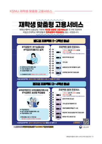 KSNU %uc7ac%ud559%uc0dd %ub9de%ucda4%ud615 %uace0%uc6a9%uc11c%ube44%uc2a4%ub300%ud559%uc77c%uc790%ub9ac%ud50c%ub7ec%uc2a4%uc13c%ud130 %uc18c%uac1c %ubc0f %ud504%ub85c%uadf8%ub7a8 %uc548%ub0b4 | 13