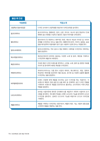 %uc9c1%uc5c5%uba85%uce6d %uc9c1%uc5c5%uc18c%uac1c%uace0%ub4f1%ud559%uad50 %uc815%uad50%uc0ac(2%uae09) %ub514%uc790%uc778 %uad50%uc0ac%ub85c%uc11c %uace0%ub4f1%ud559%uc0dd%uc744 %ub300%uc0c1%uc73c%ub85c %ub514%uc790%uc778%uad50%uc721%uc744 %uc2e4%uc2dc%ud55c%ub2e4.%uad11%uace0%ub514%uc790%uc774%ub108 %uad11%uace0%ub514%uc790%uc774%ub108%ub294 %ud154%ub808%ube44%uc804, %uc7a1%uc9c0, %uc2e0%ubb38, %ub77c%ub514%uc624, %ud3ec%uc2a4%ud130 %ub4f1%uc758 %uc601%uc0c1%uc774%ub098 %uc778%uc1c4%ub9e4%uccb4%uc758 %uad11%uace0 %ud654%uba74%uc744 %uad6c%uc131%ud558%uace0 %ud544%uc694%ud55c %uadf8%ub9bc%uacfc %uc774%ubbf8%uc9c0%ub97c %ub514%uc790%uc778%ud55c%ub2e4.%uc6f9%ub514%uc790%uc774%ub108%uc6f9%uc0ac%uc774%ud2b8%uc758 %uccab %ud654%uba74%uc774%ub098 %uc138%ubd80%uc801%uc778 %ud654%uba74, %uba54%ub274%uc758 %uc0c9%uc0c1%uacfc %uc544%uc774%ucf58 %ub4f1 %uc0ac%uc774%ud2b8 %uc804%uccb4%ub97c %ub514%uc790%uc778%ud558%uace0 %ub9cc%ub4dc%ub294 %uc77c%uc744 %ud55c%ub2e4. %uc6f9%ud398%uc774%uc9c0%uc758 %ubb38%uc790, %uc774%ubbf8%uc9c0, %ub3d9%uc601%uc0c1, %uc74c%uc131 %ub4f1%uc744 %uc7ac%uac00%uacf5%ud558%uc5ec %uc774%uc6a9%uc790%ub4e4%uc774 %uc54c%uae30 %uc27d%uace0 %uc0ac%uc6a9%ud558%uae30 %uc27d%uac8c %ub9cc%ub4dc%ub294 %uc791%uc5c5%uc744 %ud55c%ub2e4.%uc77c%ub7ec%uc2a4%ud2b8%ub808%uc774%ud130 %uc77c%ub7ec%uc2a4%ud2b8%ub808%uc774%ud130%ub294 %uc8fc%ub85c %uad11%uace0%ub098 %uc601%uc0c1 %ub9e4%uccb4%uc758 %uadf8%ub798%ud53d%uc744 %ub514%uc790%uc778%ud558%uace0 %uc81c%uc791%ud558%ub294 %uc77c%uc744 %ub2f4%ub2f9%ud55c%ub2e4.%ud14d%uc2a4%ud0c0%uc77c%ub514%uc790%uc774%ub108 %ud328%uc158&%uc778%ud14c%ub9ac%uc5b4 %ubd84%uc57c%uc5d0 %uc0ac%uc6a9%ub418%ub294 %ub2e4%uc591%ud55c %uc18c%uc7ac %ubc0f %uce7c%ub77c, %ud328%ud134%uc744 %uae30%ud68d%ud558%uace0 %ub514%uc790%uc778%ud558%uc5ec %uc81c%ud488%uc73c%ub85c %uc81c%uc791%ud55c%ub2e4.%ud328%uc158%ub514%uc790%uc774%ub108 %uad6d%ub0b4%uc678 %ud328%uc158 %ub514%uc790%uc778 %ud2b8%ub79c%ub4dc%ub97c %ud30c%uc545%ud558%uace0, %uc2a4%ud0c0%uc77c, %uc18c%uc7ac, %uce7c%ub77c %ub4f1 %uad00%ub828%ub41c %uc790%ub8cc%ub97c %ub9ac%uc11c%uce58 %ubc0f %ubd84%uc11d%ud558%uc5ec %uc0c8%ub85c%uc6b4 %ud328%uc158%uc744 %ub514%uc790%uc778%ud55c%ub2e4.%uce90%ub9ad%ud130%ub514%uc790%uc774%ub108%uce90%ub9ad%ud130%ub514%uc790%uc774%ub108%ub294 %uac01%uc885 %ud32c%uc2dc %uc0ac%uc5c5%uc758 %uce90%ub9ad%ud130, %uc560%ub2c8%uba54%uc774%uc158, %uac8c%uc784, %uc601%ud654%uc758 %ud2b9%uc9d5%uc801%uc778 %uce90%ub9ad%ud130%ub97c %ucc3d%uc870%ud558%uc5ec %uc774%ub97c %uc7a5%ub09c%uac10, %ubb38%uad6c%ub958 %ub4f1 %ub2e4%uc591%ud55c %uc0c1%ud488%uc5d0 %ud65c%uc6a9%ud574 %ub514%uc790%uc778%ud558%ub294 %uc77c%uc744 %ub2f4%ub2f9%ud55c%ub2e4.%ube44%uc8fc%uc5bc%uba38%ucc9c%ub2e4%uc774%uc800%ube0c%ub79c%ub4dc %ucee8%uc149%uc5d0 %ub9de%ucdb0 %uc81c%ud488%uc744 %uc804%uc2dc%ud558%ub294 %uacf5%uac04 %ub514%uc790%uc778%uc744 %ud558%ub294 %uc9c1%uc885%uc774%ub2e4. %uac01 %ube0c%ub79c%ub4dc%uc758 %ub9e4%uc7a5%uc758 %ucee8%uc149 %uc124%uc815 %ubc0f %uc0c1%ud488 %ubc30%uce58 %ub4f1 %uc804%uccb4%uc801%uc778 %uacf5%uac04 %ub514%uc790%uc778 %uc5f0%ucd9c%uc744 %uae30%ud68d%ud558%uc5ec %ube0c%ub79c%ub4dc%uc640 %uc81c%ud488%uc744 %ud6a8%uacfc%uc801%uc73c%ub85c %ud64d%ubcf4%ud558%ub294 %uc18c%ube44%uc790%uc640%uc758 %ucee4%ubba4%ub2c8%ucf00%uc158 %uc5ed%ud560%uc744 %ub2f4%ub2f9%ud55c%ub2e4.UX/UI%ub514%uc790%uc774%ub108%ubaa8%ubc14%uc77c %uc0ac%uc6a9%uc790%ud55c%ud14c %ud3b8%ub9ac%ud55c %uc778%ud130%ud398%uc774%uc2a4%ub97c %uc81c%uacf5%ud558%uae30 %uc704%ud558%uc5ec %uc0ac%uc6a9%uc790%uc758 %uc694%uad6c%uc0ac%ud56d%uc744 %ubd84%uc11d%ud55c%ub2e4. %ud558%ub4dc%uc6e8%uc5b4 %ud2b9%uc131%uc744 %uace0%ub824%ud55c UI/UX%uc758 %uae30%ub2a5%uc744 %ubd84%uc11d%ud558%uc5ec UI/UX %ub514%uc790%uc778%uc744 %uac80%ud1a0%ud55c%ub2e4. %uac80%ud1a0%ud55c UI/UX%uc758 %uae30%ub2a5%uc744 %ubc14%ud0d5%uc73c%ub85c UI/UX %ub514%uc790%uc778%uc744 %uae30%ud68d%ud55c%ub2e4.%uc81c%ud488%ub514%uc790%uc774%ub108 %uc81c%ud488%uc744 %uae30%ud68d%ud558%uace0 %ub514%uc790%uc778%ud558%ub294 %uc804%ubb38%uac00%ub85c%uc11c, %uc81c%ud488%uc758 %uc678%uad00, %uae30%ub2a5, %uc0ac%uc6a9%uc790 %uacbd%ud5d8 %ub4f1%uc744%uace0%ub824%ud558%uc5ec %uc81c%ud488%uc744 %uac1c%ubc1c%ud558%ub294 %uc77c%uc744 %ud55c%ub2e4. %uc878%uc5c5 %ud6c4 %uc9c4%ub85c154 | 2025%ud559%ub144%ub3c4 %uc9c4%ub85c %ucde8%uc5c5 %uac00%uc774%ub4dc%ubd81