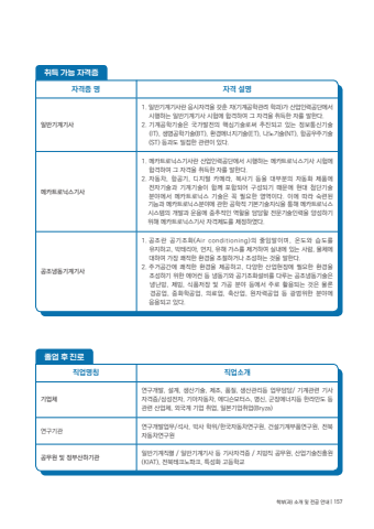 %uc9c1%uc5c5%uba85%uce6d %uc9c1%uc5c5%uc18c%uac1c%uae30%uc5c5%uccb4%uc5f0%uad6c%uac1c%ubc1c, %uc124%uacc4, %uc0dd%uc0b0%uae30%uc220, %uc81c%uc870, %ud488%uc9c8, %uc0dd%uc0b0%uad00%ub9ac%ub4f1 %uc5c5%ubb34%ub2f4%ub2f9/ %uae30%uacc4%uad00%ub828 %uae30%uc0ac%uc790%uaca9%uc99d/%uc0bc%uc131%uc804%uc790, %uae30%uc544%uc790%ub3d9%ucc28, %uc5d0%ub514%uc2a8%ubaa8%ud130%uc2a4, %uba85%uc2e0, %uad70%uc7a5%uc5d0%ub108%uc9c0%ub4f1 %ud55c%ub77c%ub9cc%ub3c4 %ub4f1 %uad00%ub828 %uc0b0%uc5c5%uccb4, %uc678%uad6d%uacc4 %uae30%uc5c5 %ucde8%uc5c5, %uc77c%ubcf8%uae30%uc5c5%ucde8%uc5c5(Bryza)%uc5f0%uad6c%uae30%uad00 %uc5f0%uad6c%uac1c%ubc1c%uc5c5%ubb34/%uc11d%uc0ac, %ubc15%uc0ac %ud559%uc704/%ud55c%uad6d%uc790%ub3d9%ucc28%uc5f0%uad6c%uc6d0, %uac74%uc124%uae30%uacc4%ubd80%ud488%uc5f0%uad6c%uc6d0, %uc804%ubd81%uc790%ub3d9%ucc28%uc5f0%uad6c%uc6d0%uacf5%ubb34%uc6d0 %ubc0f %uc815%ubd80%uc0b0%ud558%uae30%uad00 %uc77c%ubc18%uae30%uacc4%uc9c1%ub82c / %uc77c%ubc18%uae30%uacc4%uae30%uc0ac %ub4f1 %uae30%uc0ac%uc790%uaca9%uc99d / %uc9c0%ubc29%uc9c1 %uacf5%ubb34%uc6d0, %uc0b0%uc5c5%uae30%uc220%uc9c4%ud765%uc6d0(KIAT), %uc804%ubd81%ud14c%ud06c%ub178%ud30c%ud06c, %ud2b9%uc131%ud654 %uace0%ub4f1%ud559%uad50%uc878%uc5c5 %ud6c4 %uc9c4%ub85c%ucde8%ub4dd %uac00%ub2a5 %uc790%uaca9%uc99d%uc790%uaca9%uc99d %uba85 %uc790%uaca9 %uc124%uba85%uc77c%ubc18%uae30%uacc4%uae30%uc0ac1. %uc77c%ubc18%uae30%uacc4%uae30%uc0ac%ub780 %uc751%uc2dc%uc790%uaca9%uc744 %uac16%ucd98 %uc790(%uae30%uacc4%uacf5%ud559%uad00%ub824 %ud559%uacfc)%uac00 %uc0b0%uc5c5%uc778%ub825%uacf5%ub2e8%uc5d0%uc11c %uc2dc%ud589%ud558%ub294 %uc77c%ubc18%uae30%uacc4%uae30%uc0ac %uc2dc%ud5d8%uc5d0 %ud569%uaca9%ud558%uc5ec %uadf8 %uc790%uaca9%uc744 %ucde8%ub4dd%ud55c %uc790%ub97c %ub9d0%ud55c%ub2e4.2. %uae30%uacc4%uacf5%ud559%uae30%uc220%uc740 %uad6d%uac00%ubc1c%uc804%uc758 %ud575%uc2ec%uae30%uc220%ub85c%uc368 %ucd94%uc9c4%ub418%uace0 %uc788%ub294 %uc815%ubcf4%ud1b5%uc2e0%uae30%uc220 (IT), %uc0dd%uba85%uacf5%ud559%uae30%uc220(BT), %ud658%uacbd%uc5d0%ub108%uc9c0%uae30%uc220(ET), %ub098%ub178%uae30%uc220(NT), %ud56d%uacf5%uc6b0%uc8fc%uae30%uc220 (ST) %ub4f1%uacfc%ub3c4 %ubc00%uc811%ud55c %uad00%ub828%uc774 %uc788%ub2e4.%uba54%uce74%ud2b8%ub85c%ub2c9%uc2a4%uae30%uc0ac1. %uba54%uce74%ud2b8%ub85c%ub2c9%uc2a4%uae30%uc0ac%ub780 %uc0b0%uc5c5%uc778%ub825%uacf5%ub2e8%uc5d0%uc11c %uc2dc%ud589%ud558%ub294 %uba54%uce74%ud2b8%ub85c%ub2c9%uc2a4%uae30%uc0ac %uc2dc%ud5d8%uc5d0 %ud569%uaca9%ud558%uc5ec %uadf8 %uc790%uaca9%uc744 %ucde8%ub4dd%ud55c %uc790%ub97c %ub9d0%ud55c%ub2e4.2. %uc790%ub3d9%ucc28, %ud56d%uacf5%uae30, %ub514%uc9c0%ud138 %uce74%uba54%ub77c, %ubcf5%uc0ac%uae30 %ub4f1%uc744 %ub300%ubd80%ubd84%uc758 %uc790%ub3d9%ud654 %uc81c%ud488%uc5d0 %uc804%uc790%uae30%uc220%uacfc %uae30%uacc4%uae30%uc220%uc774 %ud568%uaed8 %ud3ec%ud568%ub418%uc5b4 %uad6c%uc131%ub418%uae30 %ub54c%ubb38%uc5d0 %ud604%ub300 %ucca8%ub2e8%uae30%uc220 %ubd84%uc57c%uc5d0%uc11c %uba54%uce74%ud2b8%ub85c%ub2c9%uc2a4 %uae30%uc220%uc740 %uaf2d %ud544%uc694%ud55c %uc601%uc5ed%uc774%ub2e4. %uc774%uc5d0 %ub530%ub77c %uc219%ub828%ub41c %uae30%ub2a5%uacfc %uba54%uce74%ud2b8%ub85c%ub2c9%uc2a4%ubd84%uc57c%uc5d0 %uad00%ud55c %uacf5%ud559%uc801 %uae30%ubcf8%uae30%uc220%uc9c0%uc2dd%uc744 %ud1b5%ud574 %uba54%uce74%ud2b8%ub85c%ub2c9%uc2a4 %uc2dc%uc2a4%ud15c%uc758 %uac1c%ubc1c%uacfc %uc6b4%uc6a9%uc5d0 %uc911%ucd94%uc801%uc778 %uc5ed%ud560%uc744 %ub2f4%ub2f9%ud560 %uc804%ubb38%uae30%uc220%uc778%ub825%uc744 %uc591%uc131%ud558%uae30 %uc704%ud574 %uba54%uce74%ud2b8%ub85c%ub2c9%uc2a4%uae30%uc0ac %uc790%uaca9%uc81c%ub3c4%ub97c %uc81c%uc815%ud558%uc600%ub2e4.%uacf5%uc870%ub0c9%ub3d9%uae30%uacc4%uae30%uc0ac1. %uacf5%uc870%ub780 %uacf5%uae30%uc870%ud654(Air conditioning)%uc758 %uc904%uc784%ub9d0%uc774%uba70, %uc628%ub3c4%uc640 %uc2b5%ub3c4%ub97c %uc720%uc9c0%ud558%uace0, %ubc15%ud14c%ub9ac%uc544, %uba3c%uc9c0, %uc720%ud574 %uac00%uc2a4%ub97c %uc81c%uac70%ud558%uc5ec %uc2e4%ub0b4%uc5d0 %uc788%ub294 %uc0ac%ub78c, %ubb3c%uccb4%uc5d0 %ub300%ud558%uc5ec %uac00%uc7a5 %ucf8c%uc801%ud55c %ud658%uacbd%uc744 %uc870%uc808%ud558%uac70%ub098 %uc870%uc131%ud558%ub294 %uac83%uc744 %ub9d0%ud55c%ub2e4.2. %uc8fc%uac70%uacf5%uac04%uc5d0 %ucf8c%uc801%ud55c %ud658%uacbd%uc744 %uc81c%uacf5%ud558%uace0, %ub2e4%uc591%ud55c %uc0b0%uc5c5%ud604%uc7a5%uc5d0 %ud544%uc694%ud55c %ud658%uacbd%uc744 %uc870%uc131%ud558%uae30 %uc704%ud55c %uc5d0%uc5b4%ucee8 %ub4f1 %ub0c9%ub3d9%uae30%uc640 %uacf5%uae30%uc870%ud654%uc124%ube44%ub97c %ub2e4%ub8e8%ub294 %uacf5%uc870%ub0c9%ub3d9%uae30%uc220%uc740 %ub0c9%ub09c%ubc29, %uc81c%ube59, %uc2dd%ud488%uc800%uc7a5 %ubc0f %uac00%uacf5 %ubd84%uc57c %ub4f1%uc5d0%uc11c %uc8fc%ub85c %ud65c%uc6a9%ub418%ub294 %uac83%uc740 %ubb3c%ub860 %uacbd%uacf5%uc5c5, %uc911%ud654%ud559%uacf5%uc5c5, %uc758%ub8cc%uc5c5, %ucd95%uc0b0%uc5c5, %uc6d0%uc790%ub825%uacf5%uc5c5 %ub4f1 %uad11%ubc94%uc704%ud55c %ubd84%uc57c%uc5d0 %uc751%uc6a9%ub418%uace0 %uc788%ub2e4.%ud559%ubd80(%uacfc) %uc18c%uac1c %ubc0f %uc804%uacf5 %uc548%ub0b4 | 157