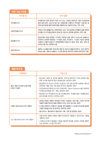 %ucde8%ub4dd %uac00%ub2a5 %uc790%uaca9%uc99d%uc790%uaca9%uc99d %uba85 %uc790%uaca9 %uc124%uba85%ubb34%uc120%uc124%ube44%uae30%uc0ac%ubb34%uc120%ud1b5%uc2e0%uc5d0 %uad00%ud55c %uacf5%ud559%uc801 %uc774%ub860 %uc9c0%uc2dd %ub610%ub294 %uae30%uc220%uc744 %ubc14%ud0d5%uc73c%ub85c %uac01%uc885 %ubb34%uc120%uc124%ube44%uc5d0 %uad00%ud55c %uc124%uacc4%u00b7%uac10%ub9ac%u00b7%uc2dc%uacf5 %ubc0f %ubd84%uc11d %ub4f1 %uae30%uc220%uc5c5%ubb34%ub97c %uc218%ud589%ud558%uace0 %ubb34%uc120%uc124%ube44 %uae30%uc220%uae30%uc900 %ubc0f %uc548%uc804%uc2dc%uc124%uae30%uc900%uc744 %ud1b5%ud574 %uc804%ud30c%uc790%uc6d0%uc744 %ud6a8%uc728%uc801%uc73c%ub85c %uc774%uc6a9%ud558%uac8c %ud558%ub294 %uc9c1%ubb34 %uc218%ud589%uc804%ud30c%uc804%uc790%ud1b5%uc2e0%uae30%uc0ac %uad6d%uc81c %ubc0f %uad6d%ub0b4 %ud56d%ud574%ub97c %ud558%ub294 %uc120%ubc15(%uc5ec%uac1d%uc120, %uc0c1%uc120, %uc5b4%uc120 %ub4f1)%uc5d0%uc11c %uc548%uc804%ud1b5%uc2e0 %ub4f1%uc744 %uc704%ud558%uc5ec %ubb34%uc120%ud1b5%uc2e0 %ubc0f %ubb34%uc120%ud1b5%uc2e0%uc7a5%ube44%uc758 %uc124%uacc4 %ubc0f %uace0%uc7a5%uc218%ub9ac %uc5c5%ubb34%ub97c %ub2f4%ub2f9%ud558%ub294 %uc9c1%ubb34 %uc218%ud589%ubc29%uc1a1%ud1b5%uc2e0%uae30%uc0ac%ubc29%uc1a1%uad6d%uc5d0%uc11c %ubc29%uc1a1 %uc81c%uc791%uc6a9 %uae30%uae30%uc5d0%uc11c %uc81c%uc791%ub41c %ubc29%uc1a1 %uc815%ubcf4%uac00 %uc1a1%uc2e0%uc18c%ub85c %uc1a1%ucd9c%ub418%uae30 %uc804%uae4c%uc9c0%uc758 %ub2e8%uacc4%uc5d0 %ud574%ub2f9%ud558%ub294 %uae30%uae30%ub4e4%uc758 %uc6b4%uc6a9, %uc720%uc9c0%ubcf4%uc218, %uc2dc%uc2a4%ud15c %uad6c%uc131%uc758 %uc5c5%ubb34%ub97c %uc218%ud589%ud558%uace0 %uc544%uc6b8%ub7ec %ubc29%uc1a1%uae30%uae30 %uad00%ub828%uc5c5%uccb4%uc5d0%uc11c %ubc29%uc1a1%uae30%uae30 %uc124%uacc4, %uc81c%uc870, %uc124%uce58, %uc6b4%uc601 %ubc0f %uc720%uc9c0%ubcf4%uc218%ub97c %ud558%ub294 %uc5c5%ubb34%ub97c %uc218%ud589%uc815%ubcf4%ucc98%ub9ac%uae30%uc0ac %ucef4%ud4e8%ud130 %uc2dc%uc2a4%ud15c%uc744 %ud1b5%ud55c %ud504%ub85c%uadf8%ub7a8 %uac1c%ubc1c %ubc0f %uc804%uc0b0%uc2dc%uc2a4%ud15c%uc744 %ubd84%uc11d%ud558%uace0, %uc804%uc0b0 %uc5c5%ubb34%uc758 %ud0c0%ub2f9%uc131 %uac80%ud1a0, %uc815%ubcf4%uc2dc%uc2a4%ud15c%ubd84%uc11d, %uc2dc%uc2a4%ud15c %uc124%uacc4 %ub4f1 %uc815%ubcf4%ucc98%ub9ac %uc804%ubc18%uc5d0 %uad00%ud55c %uc5c5%ubb34 %uc218%ud589%uc9c1%uc5c5%uba85%uce6d %uc9c1%uc5c5%uc18c%uac1c%ud1b5%uc2e0, %ubc29%uc1a1 %ubc0f %uc815%ubcf4%uc2dc%uc2a4%ud15c %uad00%ub828%ud68c%uc0ac%uc758 %uae30%uc220%uc790- %ud1b5%uc2e0%uacf5%ud559 %uae30%uc220%uc790 %ubc0f %uc5f0%uad6c%uc6d0 (%ubb3c%ub9ac%ud559, %uc218%ud559 %ubc0f %ucef4%ud4e8%ud130%uc758 %uad6c%uc870%uc640 %uc6d0%ub9ac%uc5d0 %ub300%ud55c %uc804%ubb38 %uc9c0%uc2dd%uc744 %ubc14%ud0d5%uc73c%ub85c %ud1b5%uc2e0 %uc7a5%ube44%ub97c %uc124%uacc4, %uc0dd%uc0b0%ud558%ub294 %uc5c5%ubb34)- %ud1b5%uc2e0%uc5d4%uc9c0%ub2c8%uc5b4 (%ucd08%uace0%uc18d %uc778%ud130%ub137 %uc2dc%uc2a4%ud15c %ubc0f %uae30%ud0c0 %uc804%uc1a1 %ubc29%uc2dd%uc5d0 %uc0ac%uc6a9%ub418%ub294 %ud1b5%uc2e0%uc758 %uc804%uc790%ud68c%ub85c, %uc81c%ud488, %uad00%ub828 %uae30%uc220 %ub4f1%uc744 %uc5f0%uad6c%ud558%uace0 %uac1c%ubc1c%ud558%ub294 %uc5c5%ubb34)- %ubb34%uc120%uc8fc%ud30c%uc218(RF)%uc5d4%uc9c0%ub2c8%uc5b4 (%ubb34%uc120 %uc8fc%ud30c%uc218(RF: Radio Frequency)%ub97c %uc774%uc6a9%ud558%uc5ec %ubb34%uc120%ud1b5%uc2e0%uc7a5%ube44%ub4e4%uc744 %uc5f0%uad6c, %uac1c%ubc1c, %uc124%uacc4%ud558%ub294 %uc5c5%ubb34)- %ud1b5%uc2e0%uc7a5%ube44%uae30%uc0ac (%ubb34%uc120%uc911%uacc4%uae30%uc2dc%uc2a4%ud15c, %uc720%uc120%ud1b5%uc2e0%uc7a5%ube44, %ubb34%uc120%ud1b5%uc2e0%uc7a5%ube44, %uc704%uc131%ud1b5%uc2e0%uc7a5%ube44 %ub4f1%uc758 %uc7a5%ube44%ub97c %uc720%uc9c0%ud558%uace0 %uad00%ub9ac%ud558%ub294 %uc5c5%ubb34)%ucee8%ud150%uce20 %uad00%ub828 %ud68c%uc0ac%uc758 SW %uac1c%ubc1c%uc790- %ubaa8%ubc14%uc77c %ucee8%ud150%uce20 %uac1c%ubc1c%uc790 (%ubaa8%ubc14%uc77c%uae30%uae30%uc5d0%uc11c %uc0ac%uc6a9%ub418%ub294 %ud504%ub85c%uadf8%ub7a8, %uace0%uac1d%uc758 %uc694%uad6c%uc5d0 %uc801%ud569%ud55c %uc5b4%ud50c%ub9ac%ucf00%uc774%uc158 %ub4f1%uc744 %uac1c%ubc1c%ud558%uace0 %uc720%uc9c0%u00b7%uad00%ub9ac%u00b7%ubcf4%uc218%ud558%ub294 %uc5c5%ubb34)- %ub514%uc9c0%ud138 %ud050%ub808%uc774%ud130 (%uc0ac%uc6a9%uc790%uac00 %uc815%ubcf4%ub97c %uc27d%uac8c %ud65c%uc6a9%ud560 %uc218 %uc788%ub3c4%ub85d %uc778%ud130%ub137%uc5d0 %ub4f1%ub85d%ub41c %ub2e4%uc591%ud55c %uc815%ubcf4%ub97c %ube44%uad50 %ubc0f %ubd84%uc11d%ud558%uace0 %uc815%ub9ac%ud558%ub294 %uc5c5%ubb34)- %uc6f9%ub514%uc790%uc774%ub108, %uc6f9%ud504%ub85c%ub4c0%uc11c (%uc6f9%uc0ac%uc774%ud2b8 %uae30%ud68d, %uad6c%ucd95 %ubc0f %uc6b4%uc601%ud558%ub294 %uc5c5%ubb34)IoT %uad00%ub828 %ud68c%uc0ac%uc758 SW, HW %uac1c%ubc1c%uc790- %uc0ac%ubb3c %uc778%ud130%ub137 %uac1c%ubc1c%uc790 (%uc0ac%ubb3c%uacfc %uc0ac%ubb3c%uc774 %uc778%ud130%ub137%uc73c%ub85c %ub300%ud654%ud560 %uc218 %uc788%ub3c4%ub85d %ud558%ub294 %uae30%uc220%uc744 %uac1c%ubc1c%ud558%ub294 %uc5c5%ubb34)- %uc2a4%ub9c8%ud2b8%ub3c4%uc2dc%uad6c%ucd95%uac00 (%uc815%ubcf4%ud1b5%uc2e0 %uae30%uc220%uc744 %uc774%uc6a9%ud558%uc5ec %uc815%ubcf4%ub97c %uc218%uc9d1%ud558%uace0 %uc790%uc6d0%uc744 %ud6a8%uc728%uc801 %uc73c%ub85c %uad00%ub9ac%ud558%ub294 %uc2dc%uc2a4%ud15c %uad6c%ucd95 %uc5c5%ubb34)%uc878%uc5c5 %ud6c4 %uc9c4%ub85c%ud559%ubd80(%uacfc) %uc18c%uac1c %ubc0f %uc804%uacf5 %uc548%ub0b4 | 31