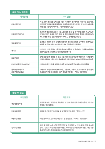 %uc9c1%uc5c5%uba85%uce6d %uc9c1%uc5c5%uc18c%uac1c%ud574%uc591%uacbd%ucc30%uacf5%ubb34%uc6d0 %ud574%uc591%uc8fc%uad8c %uc218%ud638, %ud574%uc591%uc548%uc804, %uce58%uc548%ud655%ub9bd %ubc0f %uacbd%ube44 %uad6c%ub09c %uc5c5%ubb34 / %ud574%uc591%uacbd%ucc30%uccad, %uac01 %uc9c0%ubc29%uacbd%ucc30%uccad, %uacbd%ube44%ud568%uc815 %ub4f1%uc5b4%ub85c%uc9c1%uacf5%ubb34%uc6d0 %uad6d%ub0b4%uc678 %uc5b4%uc120%uc758 %uc548%uc804%uc870%uc5b4%uc9c0%ub3c4 %ubc0f %ubd88%ubc95%uc870%uc5c5 %ub2e8%uc18d %uc5c5%ubb34 / %ud574%uc591%uc218%uc0b0%ubd80%uc218%uc0b0%uc9c1%uacf5%ubb34%uc6d0 %uc5b4%uc5c5 %uad00%ub9ac(%ud5c8%uac00, %uba74%ud5c8) %ubc0f %uc5b4%uc5c5%uc9c0%ub3c4 %ub4f1 %ud589%uc815%uc5c5%ubb34 / %uac01 %uc2dc%ub3c4 %ud574%uc591%uc218%uc0b0%uacfc %uc120%ubc15%uc9c1%uacf5%ubb34%uc6d0%uad6d%uac00 %ubc0f %uc9c0%ubc29 %uc18c%uc18d %uc120%ubc15 %uc548%uc804%uc6b4%ud56d %ubc0f %uad00%ub9ac%uc5c5%ubb34 / %uc2dc%uccad,%ub3c4%uccad,%uad70%uccad %uc18c%uc18d%uc758 %uc120%ubc15 / %uc5f0%uad6c%uc870%uc0ac%uc120(%uad6d%ub9bd%uc218%uc0b0%uacfc%ud559%uc6d0), %uc218%ub85c%uce21%ub7c9%uc120(%uad6d%ub9bd%ud574%uc591%uc870%uc0ac%uc6d0), %ud574%uc591%uae30%uc0c1%uc870%uc0ac%uc120(%uae30%uc0c1%uccad), %ud1b5%ud56d%uc9c0%ub3c4%uac10%ub3c5%uc120(%uc9c0%ubc29%ud574%uc591%uc218%uc0b0%uccad)%uc878%uc5c5 %ud6c4 %uc9c4%ub85c%ucde8%ub4dd %uac00%ub2a5 %uc790%uaca9%uc99d%uc790%uaca9%uc99d %uba85 %uc790%uaca9 %uc124%uba85%uc5b4%ub85c%uc0b0%uc5c5%uae30%uc0ac%uc5b4%uc120, %ud56d%ud574 %ubc0f %ud1b5%uc2e0%uc7a5%ube44 %uc6b4%uc6a9%uae30%uc220, %uc5b4%ub85c%uc7a5%ube44 %ubc0f %uc5b4%ud68d%ubb3c %uc800%uc7a5%uc2dc%uc124 %uc6b4%uc6a9%uae30%uc220,%uc5b4%uad6c%uc5b4%ubc95 %ubc0f %uc5b4%ub85c%uae30%uc220%uc744 %ud65c%uc6a9%ud558%uace0 %uc774%uc6a9%ud558%uc5ec %uc5b4%uc5c5%uc0dd%uc0b0%uc131 %ud5a5%uc0c1 %ubc0f %uc0dd%uc0b0%uae30%uc220%uc720%uc9c0%ub97c %uc704%ud55c %uc804%ubb38%uae30%uc220%uc778%ub825 %uc790%uaca9%uc81c%ub3c4 / %ud55c%uad6d%uc0b0%uc5c5%uc778%ub825%uacf5%ub2e8%uc5b4%uc5c5%uc0dd%uc0b0%uad00%ub9ac%uae30%uc0ac%uc218%uc0b0%uad00%ub828 %ubc95%ub839 %ub0b4%uc5d0%uc11c%uc758 %uc218%uc0b0%ub3d9%uc2dd%ubb3c %ucc44%ucde8 %ud3ec%ud68d %ubc0f %uc5b4%uad6c%uc5b4%ubc95 %uac1c%ubc1c, %uc9c0%uc18d%uac00%ub2a5%ud55c %uc5b4%uc5c5%uc0dd%uc0b0%uae30%ubc18 %uad6c%ucd95%uc744 %uc704%ud55c %uc5b4%uc7a5 %ubc0f %ud574%uc591%uc0dd%ubb3c%uc790%uc6d0%uad00%ub9ac%uc640 %ucd1d%ud5c8%uc6a9%uc5b4%ud68d%ub7c9(TAC) %uc81c%ub3c4%uc218%ud589%uc744 %uc704%ud55c %uc804%ubb38%uae30%uc220%uc778%ub825%uc790%uaca9%uc81c%ub3c4 / %ud55c%uad6d%uc0b0%uc5c5%uc778%ub825%uacf5%ub2e8%ud56d%ub85c%ud45c%uc9c0%uae30%uc0ac %ud56d%ub85c%ud45c%uc9c0 %uc804%ubc18%uc5d0 %uad00%ud55c %uacf5%ud559%uc801 %uae30%uc220%uc774%ub860 %ubc0f %uc804%ubb38%uc9c0%uc2dd%uacfc %uc2e4%ubb34%uc801%uc778 %uc219%ub828%uae30%ub2a5%uc744 %uc218%ud589%ud560 %uc218 %uc788%ub294 %uc804%ubb38%uae30%uc220%uc778%ub825 %uc790%uaca9%uc81c%ub3c4 / %ud55c%uad6d%uc0b0%uc5c5%uc778%ub825%uacf5%ub2e8%ud574%uae30%uc0ac %uc120%ubc15%uc5d0%uc11c %uc120%uc7a5%u00b7%ud56d%ud574%uc0ac, %ud1b5%uc2e0%uc7a5%u00b7%ud1b5%uc2e0%uc0ac%u00b7%uc6b4%ud56d%uc7a5 %ubc0f %uc6b4%ud56d%uc0ac%uc758 %uc9c1%ubb34%ub97c %uc218%ud589%ud558%ub294 %uc804%ubb38%uae30%uc220%uc778%ub825 %uc790%uaca9%uc81c%ub3c4 / %ud55c%uad6d%ud574%uc591%uc218%uc0b0%uc5f0%uc218%uc6d0%uc758%ub8cc%uad00%ub9ac%uc790 %uc120%ubc15 %uc6b4%ud56d %uc911%uc5d0 %ubc1c%uc0dd%ud560 %uc218 %uc788%ub294 %uac01%uc885 %uc758%ub8cc%uc0ac%uace0%ub97c %ubbf8%uc5f0%uc5d0 %uc608%ubc29%ud558%uace0, %uc0ac%uace0%ubc1c%uc0dd%uc2dc %uc801%uc808%ud788 %ub300%ucc98%ud558%uc5ec %uc120%uc6d0%uc758 %uac74%uac15 %uc720%uc9c0%ub97c %uc704%ud55c %uc804%ubb38 %uc778%ub825 %uc790%uaca9%uc81c%ub3c4 / %ud55c%uad6d%ud574%uc591%uc218%uc0b0%uc5f0%uc218%uc6d0%uc804%ud30c%uc804%uc790%ud1b5%uc2e0%uae30%ub2a5%uc0ac(GOC) %uc120%ubc15%uc5d0%uc11c %ud1b5%uc2e0%uc5c5%ubb34%ub97c %uc218%ud589%ud558%uae30 %uc704%ud55c %uc790%uaca9%uc81c%ub3c4/%ud55c%uad6d%ubc29%uc1a1%ud1b5%uc2e0%uc804%ud30c%uc9c4%ud765%uc6d0%ub3d9%ub825%uc218%uc0c1%ub808%uc800%uae30%uad6c %uc870%uc885%uba74%ud5c8 1%uae09,2%uae09%ubaa8%ud130%ubcf4%ud2b8, %uc218%uc0c1%uc624%ud1a0%ubc14%uc774(%uc81c%ud2b8%uc2a4%ud0a4), %uace0%ubb34%ubcf4%ud2b8, %uc2a4%ucfe0%ud130, %ud638%ubcf4%ud06c%ub798%ud504%ud2b8 %ub4f1%uc758 %ub3d9%ub825%uc218%uc0c1%ub808%uc800%uae30%uad6c%ub97c %uc870%uc815%ud558%ub824%ub294 %uc790%uac00 %ucde8%ub4dd%ud558%uc5ec%uc57c %ud558%ub294 %uba74%ud5c8 / %ud574%uc591%uacbd%ucc30%uccad%ud559%ubd80(%uacfc) %uc18c%uac1c %ubc0f %uc804%uacf5 %uc548%ub0b4 | 37
