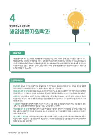 %ud574%uc591%uc0dd%ubb3c%uc790%uc6d0%ud559%uacfc4%ud574%uc591%ubc14%uc774%uc624%ud2b9%uc131%ud654%ub300%ud559%uc804%uacf5%uac1c%uc694%ud574%uc591%uc0dd%ubb3c%uc790%uc6d0%ud559%uacfc%uc758 %uc804%uacf5%uacfc%uc815%uc740 %ud574%uc591%uc0dd%ubb3c%uc5d0 %uc18d%ud558%ub294 %ud50c%ub791%ud06c%ud1a4, %uc5b4%ub958, %ud574%uc870%ub958 %ub4f1%uc5d0 %uad00%ud55c %uacfc%ubaa9%ub4e4%uc744 %uae30%ubcf8%uc73c%ub85c %ud558%uba70, %ud574%uc591%uc0dd%ubb3c%ud658%uacbd%uc744 %uc720%uc9c0%ud558%uace0 %uc624%uc5fc%ubc29%uc9c0%ub97c %uc704%ud55c %uc218%uc9c8%ud658%uacbd%uad00%ub828 %uacfc%ubaa9%uc774%uc678%uc5d0 %uae30%ucd08%uacfc%ud559%uc744 %ubc14%ud0d5%uc73c%ub85c %uc720%uc804%uc721%uc885 %ubc0f %uc0dd%ubb3c%uacf5%ud559 %uae30%ubc95%uc744 %uc774%uc6a9%ud558%uc5ec %uc0c8%ub85c%uc6b4 %ud615%uc9c8%uc758 %uc0dd%ubb3c%uccb4%ub97c %ub9cc%ub4e4%uac70%ub098 %ud574%uc591%uc0dd%ubb3c%uccb4%uc5d0%uc11c %uc778%uac04%uc5d0%uac8c %uc720%uc6a9%ud55c %uc0dd%ub9ac%ud65c%uc131%ubb3c%uc9c8%uc744 %ud0d0%uc0c9%ud558%uac70%ub098 %ucd94%ucd9c%ud560 %uc218 %uc788%ub294 %uad00%ub828 %uad50%uacfc%ubaa9%ub4e4%uc774 %uc788%uc73c%uba70, %uc804%uacf5%uacfc%ubaa9%uc758 %uc774%uc218%ub97c %ud1b5%ud574 %ud574%uc591%uc0dd%ubb3c%uc790%uc6d0%uc758 %uc804%ubb38%uac00%ub85c %uc131%uc7a5%ud558%uae30 %uc704%ud55c %uae30%ubcf8%ub2a5%ub825%uc744 %ubc30%uc591%ud560 %uc218 %uc788%uc2b5%ub2c8%ub2e4.%uc591%uc2dd%ud559%uac1c%ub860 %uc591%uc2dd%uc744 %uc778%uac04%uc758 %uc2dd%ub7c9%uc790%uc6d0%uacfc %uc0dd%ud65c%uacf5%uac04%uc758 %ud55c %ubd80%ubd84%uc73c%ub85c%uc368 %uc911%uc694%uc131%uc744 %uc774%ud574%uc2dc%ud0a4%uace0, %uc591%uc2dd%uc758 %uc885%ub958%uc640 %ubc29%ubc95%uc5d0 %ub300%ud558%uc5ec %uac1c%ub7b5%uc801%uc778 %uc124%uba85%uc744 %ud1b5%ud569%ud615 %uc591%uc2dd%uacfc %uc218%uc0b0%uc758 %uad6c%ubcc4%uacfc %ud544%uc694%uc131%uc5d0 %ub300%ud574 %ubc30%uc6b4%ub2e4.%ud574%uc591%ub3d9%ubb3c%uc721%uc885%ud559 %ubc0f %uc2e4%ud5d8 %ud574%uc591%uc0dd%ubb3c%uc744 %ub300%uc0c1%uc73c%ub85c %uace0%ubd80%uac00%uac00%uce58 %uc2e0%uae30%ub2a5%uc131 %uc0dd%ubb3c%uc744 %ucc3d%ucd9c%ud558%uae30 %uc704%ud55c %uc81c%ubc18 %uc9c0%uc2dd%uc744 %uac15%uc758%ud558%uba70 %uc5fc%uc0c9%uccb4 %uacf5%ud559%uae30%ubc95, %uc131 %uc804%ud658%uae30%ubc95, %uc7a1%uc885%ud654 %ubc0f %uc120%ubc15%uc721%uc885, %uc720%uc804%uc790%uc870%uc791 %ub4f1%uc744 %ud1b5%ud55c %uc721%uc885 %ubc29%ubc95%uacfc %uc774%uc758 %uc0c1%uc5c5%uc801%uc751%uc6a9%uc5d0 %ub300%ud574 %ubc30%uc6b4%ub2e4.%uc5b4%ub958%ud559 %uc778%uac04%uc758 %uc2dd%uc0dd%ud65c%uacfc %ubc00%uc811%ud55c %uad00%uacc4%uc788%ub294 %uc5b4%ub958%uc5d0 %ub300%ud574 %ub2e4%ub978 %ub3d9%ubb3c%uacfc %uad6c%ubd84%ub418%ub294 %uae30%ubcf8%uc801%uc778 %ud2b9%uc9d5, %ub0b4%uc678%ubd80%uc758 %ud615%ud0dc%uc801 %ud2b9%uc9d5%uc744 %uc775%ud790 %uc218 %uc788%ub2e4. %uc5b4%ub958%uc758 %ub3d9%uc815%uacfc %ubd84%ub958%ubc29%ubc95 %ub4f1%uc744 %uc2e4%ud5d8%uc744 %ud1b5%ud558%uc5ec %uc2b5%ub4dd%ud558%uace0 %uae30%ud0c0 %ubd84%ub958%ud559%uc801%uc774%ub860 %ubc0f %uc9c0%uc2dd%uc5d0 %ub300%ud574 %uc775%ud788%ub3c4%ub85d %ud55c%ub2e4.%uc218%uc0b0%uc0dd%ubb3c%ud559 %ud574%uc591%ud658%uacbd%uc758 %uc77c%ubc18%uc801 %uac1c%uad04%uacfc %uc774%uacf3%uc5d0 %uc11c%uc2dd%ud558%ub294 %uac01%uc885 %uc0dd%ubb3c %uc911 %uc218%uc0b0%uc5c5%uc758 %ub300%uc0c1%uc774 %ub418%ub294 %uc720%uc6a9%uc0dd%ubb3c%uc758 %uc885%ub958, %ubd84%ud3ec, %uc774%uc6a9 %ub4f1%uc5d0 %uad00%ud558%uc5ec %uc774%ud574%ud558%uace0 %uc791%uc6a9%ud560 %uc218 %uc788%ub294 %ub2a5%ub825%uc744 %ubc30%uc6b0%ub294 %uac83%uc774%ub2e4.%ud574%uc591%ucc9c%uc5f0%ubb3c%ubd84%ub9ac %ubc0f %uc2e4%ud5d8 %ud574%uc591%uc0dd%ubb3c%ub85c%ubd80%ud130 %uae30%ub2a5%uc131 %ud654%ud569%ubb3c%uc744 %ucd94%ucd9c%ud558%uace0 %ubd84%ub9ac%ud558%uc5ec %uc774%uc758%uc131%ubd84%uc744 %ubd84%uc11d%ud558%ub294 %uacfc%uc815%uc744 %ud559%uc2b5%ud558%uace0 %uc2e4%ud5d8%ud55c%ub2e4. %ud574%uc591%ud658%uacbd %ubd84%uc11d %ubc0f %ud574%uc591%uc0dd%ubb3c%uc758 %ub3c5%uc18c %ubd84%uc11d %ub4f1%uc5d0%uc11c %uc8fc%uc694 %uae30%uae30%uc5d0 %ub300%ud558%uc5ec %uc6d0%ub9ac%uc640 %uc0ac%uc6a9%ubc95%uacfc %uae30%uae30%uc5d0 %ub300%ud55c %uc791%ub3d9%ubc95 %ub4f1%uc744 %ud559%uc2b5%ud55c%ub2e4.%ud574%uc0b0%uc2dd%ubb3c%ud559 %ubc0f %uc2e4%ud5d8 %ubc14%ub2e4%uc758 %uc77c%ucc28%uc0dd%uc0b0%uc790%uc778 %ud574%uc0b0%uc2dd%ubb3c%uc758 %ubc94%uc8fc%ub97c %uc774%ud574%ud558%uace0 %uc870%ub958%uac00 %ub2e4%ub978 %uc2dd%ubb3c%ub85c%ubd80%ud130 %uad6c%ubcc4%ub418%ub294 %ub3c5%ud2b9%ud55c %ud2b9%uc9d5%uc5d0 %ub300%ud558%uc5ec %ud559%uc2b5%ud55c%ub2e4. %uae30%ubcf8%uc801 %ubd84%ub958%ud559%uc801 %uac1c%ub150%uc744 %uc775%ud788%uace0 %ud574%uc870%ub958%uc758 %ubd84%ub958%ubc29%ubc95 %ubc0f %ud2b9%uc9d5%uacfc %ubd84%ub958%ud559%uc801 %uc704%uce58%ub97c %ud30c%uc545%ud558%uc5ec %ud574%uc870%ub958 %ub3d9%uc815%ub2a5%ub825%uc744 %ubc30%uc591%ud55c%ub2e4.%uc804%uacf5%uc138%ubd80%uc601%uc5ed42 | 2025%ud559%ub144%ub3c4 %uc9c4%ub85c %ucde8%uc5c5 %uac00%uc774%ub4dc%ubd81