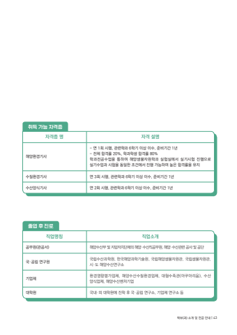%uc9c1%uc5c5%uba85%uce6d %uc9c1%uc5c5%uc18c%uac1c%uacf5%ubb34%uc6d0(%uad00%uacf5%uc11c) %ud574%uc591%uc218%uc0b0%ubd80 %ubc0f %uc9c0%ubc29%uc790%uce58%ub2e8%uccb4%uc758 %ud574%uc591%u00b7%uc218%uc0b0%uc9c1%uacf5%ubb34%uc6d0, %ud574%uc591%u00b7%uc218%uc0b0%uad00%ub828 %uacf5%uc0ac %ubc0f %uacf5%ub2e8%uad6d%u00b7%uacf5%ub9bd %uc5f0%uad6c%uc6d0 %uad6d%ub9bd%uc218%uc0b0%uacfc%ud559%uc6d0, %ud55c%uad6d%ud574%uc591%uacfc%ud559%uae30%uc220%uc6d0, %uad6d%ub9bd%ud574%uc591%uc0dd%ubb3c%uc790%uc6d0%uad00, %uad6d%ub9bd%uc0dd%ubb3c%uc790%uc6d0%uad00, %uc2dc%u00b7%ub3c4 %ud574%uc591%uc218%uc0b0%uc5f0%uad6c%uc18c%uae30%uc5c5%uccb4 %ud658%uacbd%uc601%ud5a5%ud3c9%uac00%uc5c5%uccb4, %ud574%uc591%uc218%uc0b0%uc218%uc9c8%ud658%uacbd%uc5c5%uccb4, %ub300%ud615%uc218%uc871%uad00(%uc544%ucfe0%uc544%ub9ac%uc6c0), %uc218%uc0b0%uc591%uc2dd%uc5c5%uccb4, %ud574%uc591%uc218%uc0b0%ubca4%ucc98%uae30%uc5c5%ub300%ud559%uc6d0 %uad6d%ub0b4%u00b7%uc678 %ub300%ud559%uc6d0%uc5d0 %uc9c4%ud559 %ud6c4 %uad6d%u00b7%uacf5%ub9bd %uc5f0%uad6c%uc18c, %uae30%uc5c5%uccb4 %uc5f0%uad6c%uc18c %ub4f1 %uc878%uc5c5 %ud6c4 %uc9c4%ub85c%ucde8%ub4dd %uac00%ub2a5 %uc790%uaca9%uc99d%uc790%uaca9%uc99d %uba85 %uc790%uaca9 %uc124%uba85%ud574%uc591%ud658%uacbd%uae30%uc0ac- %uc5f0 1%ud68c %uc2dc%ud589, %uad00%ub828%ud559%uacfc 6%ud559%uae30 %uc774%uc0c1 %uc774%uc218, %uc900%ube44%uae30%uac04 1%ub144- %uc804%uccb4 %ud569%uaca9%ub960 20%, %ud559%uacfc%ud559%uc0dd %ud569%uaca9%ub960 80%%ud559%uacfc%uc804%uacf5%uc218%uc5c5%uc744 %ud1b5%ud558%uc5ec %ud574%uc591%uc0dd%ubb3c%uc790%uc6d0%ud559%uacfc %uc2e4%ud5d8%uc2e4%uc5d0%uc11c %uc2e4%uae30%uc2dc%ud5d8 %uc9c4%ud589%uc73c%ub85c %uc2e4%uae30%uc218%uc5c5%uacfc %uc2dc%ud5d8%uc744 %ub3d9%uc77c%ud55c %uc870%uac74%uc5d0%uc11c %uc9c4%ud589 %uac00%ub2a5%ud558%uc5ec %ub192%uc740 %ud569%uaca9%ub960%uc744 %uc720%uc9c0%uc218%uc9c8%ud658%uacbd%uae30%uc0ac %uc5f0 3%ud68c %uc2dc%ud589, %uad00%ub828%ud559%uacfc 6%ud559%uae30 %uc774%uc0c1 %uc774%uc218, %uc900%ube44%uae30%uac04 1%ub144%uc218%uc0b0%uc591%uc2dd%uae30%uc0ac %uc5f0 2%ud68c %uc2dc%ud589, %uad00%ub828%ud559%uacfc 6%ud559%uae30 %uc774%uc0c1 %uc774%uc218, %uc900%ube44%uae30%uac04 1%ub144%ud559%ubd80(%uacfc) %uc18c%uac1c %ubc0f %uc804%uacf5 %uc548%ub0b4 | 43