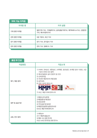 %uc9c1%uc5c5%uba85%uce6d %uc9c1%uc5c5%uc18c%uac1c%ud574%uae30, %ud574%uc6b4 %ubd84%uc57c1) HMM, SM%uc0c1%uc120, %ub300%ud55c%uc0c1%uc120, %uace0%ub824%ud574%uc6b4, %ub3d9%uc9c4%uc0c1%uc6b4, SK%ud574%uc6b4 %ub4f1%uc758 %uae30%uad00%uc7a5, %uace0%uae09 %uae30%uad00%uc0ac (%uc544%ub798 %uc0ac%uc9c4 %ucca8%ubd80)2) %ud574%uc0ac%ucee8%uc124%ud134%ud2b8 %ub4f1%uc758 %uc804%ubb38%uc9c1 %ubc0f CEO3) %uc120%ubc15%uad00%ub9ac%uc5c54) %uad6d%ub0b4%uc678 %ud574%uc6b4%ud68c%uc0ac%uc758 %ud574%uc6b4%uacbd%uc6015) %uacf5%ubb34%uac10%ub3c56) %uc120%ubc15 %uc2dc%uc6b4%uc804 %uc5d4%uc9c0%ub2c8%uc5b47) %uc870%uc120, %ud574%uc591%uae30%uc790%uc7ac %uc5d4%uc9c0%ub2c8%uc5b4%uc815%ubd80 %ubc0f %uacf5%uacf5%uae30%uad001) %ud574%uc591%uc218%uc0b0%ubd80 %uacf5%ubb34%uc6d02) %ud574%uc591%uacbd%ucc30 %ubc0f %ud574%uad70%uc7a5%uad503) %uc120%uae09 %uac80%uc0ac%uad004) %uae30%ud0c0 %uacf5%uacf5%uae30%uad00 %uac80%uc0ac%uad005) %ud574%uc591%uc548%uc804%uc2ec%ud310%uc6d0 %uc2ec%ud310%uad00/%uc870%uc0ac%uad006) %uc870%uc120, %ud574%uc591%uae30%uc790%uc7ac %uc5d4%uc9c0%ub2c8%uc5b4%uad50%uc721, %uc5f0%uad6c %ubd84%uc57c1) %ub300%ud559%uad50%uc2182) %uc218%u00b7%ud574%uc591%uacc4 %uc911%ub4f1%uad50%uc0ac3) %ud574%uc591%u00b7%uc218%uc0b0 %uad00%ub828 %uc5f0%uad6c%uc6d04) %uc911%u00b7%uc18c%uc870%uc120 %uc5f0%uad6c%uc6d0 %ub4f1 %uad00%ub828 %uc5f0%uad6c%uc18c%uc878%uc5c5 %ud6c4 %uc9c4%ub85c%ucde8%ub4dd %uac00%ub2a5 %uc790%uaca9%uc99d%uc790%uaca9%uc99d %uba85 %uc790%uaca9 %uc124%uba85%uae30%uacc4 %uad00%ub828 %uc790%uaca9%uc99d %uc77c%ubc18%uae30%uacc4 %uae30%uc0ac, %uae30%uacc4%uc124%uacc4%uae30%uc0ac, %uacf5%uc870%ub0c9%ub3d9%uae30%uacc4%uae30%uc0ac, %uba54%uce74%ud2b8%ub85c%ub2c9%uc2a4%uae30%uc0ac, %uc0b0%uc5c5%uc548%uc804%uae30%uc0ac, %uc5d0%ub108%uc9c0%uad00%ub9ac%uae30%uc0ac%uc120%ubc15 %uad00%ub828 %uc790%uaca9%uc99d 3%uae09 %uae30%uad00%uc0ac, %uc870%uc120 %uae30%uc0ac%uc804%uae30 %uad00%ub828 %uc790%uaca9%uc99d %uc804%uae30 %uae30%uc0ac, %uc804%uae30%uacf5%uc0ac %uae30%uc0ac%uc804%uc790 %uad00%ub828 %uc790%uaca9%uc99d %uc804%uc790 %uae30%uc0ac, %uc784%ubca0%ub514%ub4dc %uae30%uc0ac%ud559%ubd80(%uacfc) %uc18c%uac1c %ubc0f %uc804%uacf5 %uc548%ub0b4 | 49