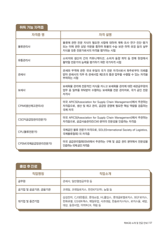 %uc9c1%uc5c5%uba85%uce6d %uc9c1%uc5c5%uc18c%uac1c%uacf5%ubb34%uc6d0 %uad00%uc138%uc0ac, %uc77c%ubc18%ud589%uc815%uacf5%ubb34%uc6d0 %ub4f1%uacf5%uae30%uc5c5 %ubc0f %uacf5%uacf5%uae30%uad00, %uae08%uc735%uae30%uad00 %ucf54%ub808%uc77c, %ucf54%ub808%uc77c%ub85c%uc9c0%uc2a4, %ud55c%uc804KPS(%uc8fc), %ub18d%ud611 %ub4f1%ub300%uae30%uc5c5 %ubc0f %uc911%uacac%uae30%uc5c5%uc0bc%uc131%uc804%uc790, CJ%ub300%ud55c%ud1b5%uc6b4, %ub86f%ub370%uc1fc%ud551, HL%ud640%ub529%uc2a4, %ub86f%ub370%uae00%ub85c%ubc8c%ub85c%uc9c0%uc2a4, BGF%ub85c%uc9c0%uc2a4, %ud55c%ud654%ud050%uc140, GS%ub124%ud2b8%uc6cd%uc2a4, %ub9e4%uc77c%uc720%uc5c5, %uc0ac%uc870%ub300%ub9bc, %ud55c%uc194%ub85c%uc9c0%uc2a4%ud2f1%uc2a4, %ub85c%uc9c0%uc2a4%uc62c, %uc138%ubc29, %ub300%uc0c1, %ub3d9%uc6d0%uc0ac%uc5c5, %uc774%ub9c8%ud2b824, %ud558%ub9bc %ub4f1%uc878%uc5c5 %ud6c4 %uc9c4%ub85c%ucde8%ub4dd %uac00%ub2a5 %uc790%uaca9%uc99d%uc790%uaca9%uc99d %uba85 %uc790%uaca9 %uc124%uba85%ubb3c%ub958%uad00%ub9ac%uc0ac%ubb3c%ub958%uc5d0 %uad00%ud55c %uc804%ubb38 %uc9c0%uc2dd%uc774 %ud544%uc694%ud55c %uc0ac%ud56d%uc5d0 %ub300%ud558%uc5ec %uacc4%ud68d%u00b7%uc870%uc0ac%u00b7%uc5f0%uad6c%u00b7%uc9c4%ub2e8%u00b7%ud3c9%uac00 %ub610%ub294 %uc774%uc5d0 %uad00%ud55c %uc0c1%ub2f4%u00b7%uc790%ubb38%uc744 %ud1b5%ud558%uc5ec %ud654%ubb3c%uc758 %uc218%uc1a1%u00b7%ubcf4%uad00%u00b7%ud558%uc5ed%u00b7%ud3ec%uc7a5 %ub4f1%uc758 %uc2e4%ubb34 %uc9c0%uc2dd%uc744 %uac16%ucd98 %uc804%ubb38%uac00%ub85c%uc11c%uc758 %uc790%uaca9%uc744 %ud3c9%uac00%ud558%ub294 %uc2dc%ud5d8%uc720%ud1b5%uad00%ub9ac%uc0ac %uc18c%ube44%uc790%uc640 %uc0dd%uc0b0%uc790 %uac04%uc758 %ucee4%ubba4%ub2c8%ucf00%uc774%uc158, %uc18c%ube44%uc790 %ub3d9%ud5a5 %ud30c%uc545 %ub4f1 %ud310%ub9e4 %ud604%uc7a5%uc5d0%uc11c %ud65c%uc57d%ud560 %uc804%ubb38%uac00%uc758 %ub2a5%ub825%uc744 %ud3c9%uac00%ud558%uae30 %uc704%ud55c %uad6d%uac00%uc790%uaca9 %uc2dc%ud5d8%uad00%uc138%uc0ac%uad00%uc138%uc640 %ubb34%uc5ed%uc5d0 %uad00%ud55c %uad6d%ub0b4 %uc720%uc77c%uc758 %uad6d%uac00 %uc804%ubb38 %uc790%uaca9%uc0ac%ub85c%uc11c %ud654%uc8fc%ub85c%ubd80%ud130 %uc758%ub8b0%ub97c %ubc1b%uc544 %uad00%uc138%uc0ac%uc758 %uc9c1%ubb34 %uc989 %uad00%uc138%uc0ac%ubc95 %uc81c2%uc870%uc758 %ud1b5%uad00 %uc5c5%ubb34%ub97c %uc218%ud589%ud560 %uc218 %uc788%ub294 %uc790%uaca9%uc744 %ubd80%uc5ec%ud558%ub294 %uc2dc%ud5d8%ubcf4%uc138%uc0ac%ubcf4%uc138%ud654%ubb3c %uad00%ub9ac%uc5d0 %uc804%ubb38%uc801%uc778 %uc9c0%uc2dd%uc744 %uc9c0%ub2c8%uace0 %ubcf4%uc138%ud654%ubb3c %uad00%ub9ac%uc5d0 %ub300%ud55c %uc138%uad00%uacf5%ubb34%uc6d0%uc758 %uc5c5%ubb34 %uc911 %uc77c%ubd80%ub97c %uc704%ud0c1%ubc1b%uc544 %uc218%ud589%ud558%ub294 %ubcf4%uc138%ud654%ubb3c %uc804%ubb38 %uad00%ub9ac%uc790%ub85c, %uad6d%uac00 %uacf5%uc778 %uc804%ubb38 %uc790%uaca9%uc0acCPIM(%uc0dd%uc0b0%uc7ac%uace0%uad00%ub9ac%uc0ac)%ubbf8%uad6d APICS(Association for Supply Chain Management)%uc5d0%uc11c %uc8fc%uad00%ud558%ub294 %uc790%uaca9%uc99d%uc73c%ub85c, %uc0dd%uc0b0 %ubc0f %uc7ac%uace0 %uad00%ub9ac, %uacf5%uae09%ub9dd %uc6b4%uc601%uc5d0 %ud544%uc694%ud55c %ud575%uc2ec %uc5ed%ub7c9%uc744 %uac80%uc99d%ud558%ub294 %uad6d%uc81c %uc790%uaca9CSCP(%uacf5%uae09%ub9dd%uad00%ub9ac%uc804%ubb38%uac00) %ubbf8%uad6d APICS(Association for Supply Chain Management)%uc5d0%uc11c %uc8fc%uad00%ud558%ub294 %uc790%uaca9%uc99d%uc73c%ub85c, %uacf5%uae09%uc0ac%uc2ac%uad00%ub9ac(SCM) %ubd84%uc57c%uc758 %uc804%ubb38%uc131%uc744 %uc778%uc99d%ud558%ub294 %uc790%uaca9%uc99dCPL(%ubb3c%ub958%uc804%ubb38%uac00) %uad6d%uc81c%uacf5%uc778 %ubb3c%ub958 %uc804%ubb38%uac00 %uc790%uaca9%uc73c%ub85c, SOLE(International Society of Logistics, %uad6d%uc81c%ubb3c%ub958%ud611%ud68c) %uc758 %uc790%uaca9%uc99dCPSM(%uad6d%uc81c%uacf5%uae09%ub9dd%uad00%ub9ac%uc804%ubb38%uac00) %ubbf8%uad6d %uacf5%uae09%uad00%ub9ac%ud611%ud68c(ISM)%uc5d0%uc11c %uc8fc%uad00%ud558%ub294 %uad6c%ub9e4 %ubc0f %uacf5%uae09 %uad00%ub9ac %ubd84%uc57c%uc5d0%uc11c %uc804%ubb38%uc131%uc744 %uc778%uc99d%ud558%ub294 %uad6d%uc81c %uacf5%uc778 %uc790%uaca9%uc99d%ud559%ubd80(%uacfc) %uc18c%uac1c %ubc0f %uc804%uacf5 %uc548%ub0b4 | 57