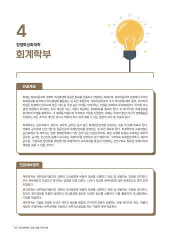 %ud68c%uacc4%ud559%ubd804%uacbd%uc601%ud2b9%uc131%ud654%ub300%ud559%ud68c%uacc4%ub294 %uc815%ubcf4%uc774%uc6a9%uc790%uc758 %uacbd%uc81c%uc801 %uc758%uc0ac%uacb0%uc815%uc5d0 %uc720%uc6a9%ud55c %uc815%ubcf4%ub97c %uc0b0%ucd9c%ud558%uace0 %uc804%ub2ec%ud558%ub294 %uacfc%uc815%uc774%uba70, %uc815%ubcf4%uc774%uc6a9%uc790%uc758 %uc785%uc7a5%uc5d0%uc11c %uc8fc%uc5b4%uc9c4 %ud68c%uacc4%uc815%ubcf4%ub97c %ubd84%uc11d%ud558%uace0 %uc758%uc0ac%uacb0%uc815%uc5d0 %ud65c%uc6a9%ud558%ub294 %uac83 %ub610%ud55c %ud3ec%ud568%ud55c%ub2e4. %uc815%ubcf4%uc774%uc6a9%uc790%ub85c%uc11c %uc8fc%uc2dd %ud22c%uc790%uc790%ub97c %uc608%ub85c %ub4e4%uba74, %ud22c%uc790%uc790%uc758 %uc790%uc6d0%uc740 %ud55c%uc815%ub418%uc5b4 %uc788%uc73c%ubbc0%ub85c %ub9ce%uc740 %uae30%uc5c5 %uc911 %uac00%uc7a5 %ub192%uc740 %uc774%uc775%uc744 %uac00%uc838%ub2e4%uc8fc%ub294 %uae30%uc5c5%uc744 %uc120%ud0dd%ud558%uc5ec %ud22c%uc790%ud574%uc57c%ud55c%ub2e4. %uc774%ub7ec%ud55c %uc758%uc0ac%uacb0%uc815 %uacfc%uc815%uc5d0%uc11c %ud22c%uc790%uc790%ub294 %ud22c%uc790 %ub300%uc0c1%uc774 %ub418%ub294 %uae30%uc5c5%uc774 %uc81c%uacf5%ud558%ub294 %ud68c%uacc4%uc815%ubcf4%ub97c %ud544%uc694%ub85c %ud55c%ub2e4. %uc774 %ub54c %uc8fc%uc5b4%uc9c4 %ud68c%uacc4%uc815%ubcf4%ub97c %ubd84%uc11d%ud558%uc5ec %ubbf8%ub798%ub97c %uc608%uce21%ud558%uace0, %uadf8 %uc608%uce21%uc744 %ubc14%ud0d5%uc73c%ub85c %ud22c%uc790%ub300%uc0c1 %uae30%uc5c5%uc744 %uc120%uc815%ud55c%ub2e4. %ud68c%uacc4%ub294 %ud22c%uc790%uc790 %ubfd0%ub9cc %uc544%ub2c8%ub77c %uacbd%uc81c%ud65c%ub3d9%uc744 %uc218%ud589%ud558%ub294 %ubaa8%ub4e0 %uc870%uc9c1%uacfc %uac1c%uc778%uc740 %ubc18%ub4dc%uc2dc %ubc30%uc6cc%uc57c %ud558%uace0 %uc27d%uac8c %ubc30%uc6b8 %uc218 %uc788%ub294 %uc77c%ub828%uc758 %uc9c0%uc2dd %ubc0f %uae30%uc220%uacfc %uac19%ub2e4.%ud68c%uacc4%ud559%ubd80%ub294 %uacf5%uc778%ud68c%uacc4%uc0ac, %uc138%ubb34%uc0ac, %uc138%ubb34%uc9c1 %uacf5%ubb34%uc6d0 %ub4f1%uacfc %uac19%uc740 %ud68c%uacc4%uc804%ubb38%uc778%ub825%uc744 %uc591%uc131%ud558%ub294 %uac83%uc744 %uccab %ubc88%uc9f8 %ubaa9%ud45c%ub85c %ud55c%ub2e4. %ub354%ubd88%uc5b4 %uacf5%uae30%uc5c5%uacfc %ubbfc%uac04%uae30%uc5c5 %ubc0f %uae08%uc735%uae30%uad00%uc758 %ud68c%uacc4%ub2f4%ub2f9%uc790%ub97c %uc591%uc131%ud558%ub294 %uac83 %ub610%ud55c %ubaa9%ud45c%ub85c %ud55c%ub2e4. %ud68c%uacc4%ud559%ubd80%uc758 %uad50%uacfc%uacfc%uc815%uc740 %uacf5%uc778%ud68c%uacc4%uc0ac %ubc0f %uc138%ubb34%uc0ac%ub294 %uacbd%uc601%u00b7%uacbd%uc81c%ubd84%uc57c%uc5d0%uc11c %uac00%uc7a5 %uad8c%uc704 %uc788%ub294 %uc804%ubb38%uc790%uaca9%uc774%uba70, %ud574%ub2f9 %uc2dc%ud5d8%uc5d0 %ud3ec%ud568%ub41c %uad50%uacfc%ubaa9%uc740 %uc138%ubb34%uc9c1 %uacf5%ubb34%uc6d0, %uacf5%uae30%uc5c5, %ubbfc%uac04%uae30%uc5c5 %ub4f1%uc5d0%uc11c %uc694%uad6c%ud558%ub294 %ud68c%uacc4%uc9c0%uc2dd%uc744 %ub9dd%ub77c%ud558%uace0 %uc788%uae30 %ub54c%ubb38%uc774%ub2e4. %uadf8%ub7ec%ubbc0%ub85c %ud68c%uacc4%uc804%ubb38%uc790%uaca9%uc0ac, %uc138%ubb34%uc9c1 %uacf5%ubb34%uc6d0, %uae30%uc5c5%ud68c%uacc4 %ub2f4%ub2f9%uc790%ub97c %ud76c%ub9dd%ud55c%ub2e4%uba74 %ud68c%uacc4%ud559%ubd80%uc758 %uad50%uacfc%uacfc%uc815%uc744 %ucda9%uc2e4%ud788 %uc774%ud589%ud558%ub294 %uac83%ub9cc%uc73c%ub85c%ub3c4 %ud544%uc694%ud55c %ud68c%uacc4%uc9c0%uc2dd%uacfc %uc5ed%ub7c9%uc744 %uac16%ucd9c %uc218 %uc788%uc744 %uac83%uc774%ub2e4.%uc7ac%ubb34%ud68c%uacc4%ub294 %uc678%ubd80%uc815%ubcf4%uc774%uc6a9%uc790%uc758 %uacbd%uc81c%uc801 %uc758%uc0ac%uacb0%uc815%uc5d0 %uc720%uc6a9%ud55c %uc815%ubcf4%ub97c %uc2dd%ubcc4%ud558%uace0 %uce21%uc815 %ubc0f %uc804%ub2ec%ud558%ub294 %uacfc%uc815%uc744 %uc758%ubbf8%ud55c%ub2e4. %uc8fc%ub85c %uc7ac%ubb34%uc81c%ud45c%uc758 %uc791%uc131%ud558%uace0 %ubd84%uc11d%ud558%ub294 %ubc29%ubc95%uc5d0 %ub300%ud574 %ub2e4%ub8ec%ub2e4. %ub098%uc544%uac00 %uc791%uc131%ub41c %uc7ac%ubb34%uc81c%ud45c%uc5d0 %ub300%ud55c %ud68c%uacc4%uac10%uc0ac%uc758 %uc601%uc5ed %ub610%ud55c %ud3ec%ud568%ud55c%ub2e4.%uad00%ub9ac%ud68c%uacc4%ub294 %ub0b4%ubd80%uc815%ubcf4%uc774%uc6a9%uc790%uc758 %uacbd%uc81c%uc801 %uc758%uc0ac%uacb0%uc815%uc5d0 %uc720%uc6a9%ud55c %uc815%ubcf4%ub97c %uc2dd%ubcc4%ud558%uace0 %uce21%uc815 %ubc0f %uc804%ub2ec%ud558%ub294 %uacfc%uc815%uc744 %uc758%ubbf8%ud55c%ub2e4. %ub530%ub77c%uc11c %uc6d0%uac00%uc815%ubcf4%ub97c %ud3ec%ud568%ud55c %uacbd%uc601%uc790%uc758 %uc758%uc0ac%uacb0%uc815%uc5d0 %ud544%uc694%ud55c %ub2e4%uc591%ud55c %uc815%ubcf4%ub97c %uc0b0%ucd9c%ud558%uace0 %uc774%ub97c %ud65c%uc6a9%ud558%uc5ec %uc758%uc0ac%uacb0%uc815%ud558%ub294 %uae30%ubc95%uc744 %ud559%uc2b5%ud55c%ub2e4.%uc138%ubb34%ud68c%uacc4%ub294 %uae30%uc5c5%uc744 %ud3ec%ud568%ud55c %uc870%uc9c1%uacfc %uac1c%uc778%uc758 %uc138%uae08%uc744 %uc138%ubc95%uc5d0 %uadfc%uac70%ud558%uc5ec %uc815%ud655%ud788 %uc0b0%ucd9c%ud558%ub294 %uac83%uc744 %ubaa9%uc801%uc73c%ub85c %ud55c%ub2e4. %uc544%uc6b8%ub7ec %uc138%ubc95%uc758 %uaddc%uc815%ud558%uc5d0%uc11c %uc138%ubb34%uc804%ub7b5%uc744 %uc218%ub9bd%ud558%uace0 %uc138%ubb34%uc758%uc0ac%uacb0%uc815%uc744 %ud558%ub294 %uae30%ubc95%uc5d0 %ub300%ud574 %ud559%uc2b5%ud55c%ub2e4.%uc804%uacf5%uc138%ubd80%uc601%uc5ed%uc804%uacf5%uac1c%uc69460 | 2025%ud559%ub144%ub3c4 %uc9c4%ub85c %ucde8%uc5c5 %uac00%uc774%ub4dc%ubd81