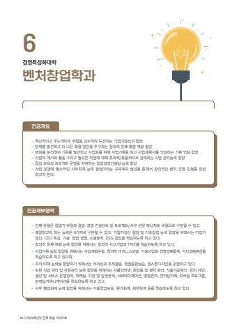 %ubca4%ucc98%ucc3d%uc5c5%ud559%uacfc6%uacbd%uc601%ud2b9%uc131%ud654%ub300%ud559- %uc778%uc7ac %uc720%ud615%uc740 %ucc3d%uc5c5%uac00 %uc720%ud615%uacfc %ucc3d%uc5c5%u00b7%uacbd%uc601 %ucee8%uc124%ud134%ud2b8 %ubc0f %ud504%ub85c%uc81d%ud2b8/%uc0ac%ubb34 %uc804%ubb38 %ub9e4%ub2c8%uc800%ub85c %uc720%ud615%uc73c%ub85c %uad6c%ubd84%ud560 %uc218 %uc788%uace0,- %ubc30%uc591%ud558%uace0%uc790 %ud558%ub294 %ub2a5%ub825%uc740 6%uac00%uc9c0%ub85c %uad6c%ubd84%ud560 %uc218 %uc788%uace0, %uae30%uc5c5%uac00%uc815%uc2e0 %ud568%uc591 %ubc0f %uae30%ucd08%ucc3d%uc5c5 %ub2a5%ub825 %ud568%uc591%uc744 %uc704%ud574%uc11c%ub294 %uae30%uc5c5%uac00 %uc815%uc2e0, CEO %ud2b9%uac15, %uae30%uc220 %ucc3d%uc5c5 %uacbd%uc601, %uc18c%uc15c%ubca4%ucc98, ESG %ucc3d%uc5c5%uc744 %ud559%uc2b5%ud558%ub3c4%ub85d %ud558%uace0 %uc788%ub2e4.- %ucc3d%uc758%uc801 %ubb38%uc81c %ud574%uacb0 %ub2a5%ub825 %ud568%uc591%uc744 %uc704%ud574%uc11c%ub294 %ucc3d%uc758%uc801 %uc0ac%uace0%uae30%ubc95%uacfc TRIZ%ub97c %ud559%uc2b5%ud558%ub3c4%ub85d %ud558%uace0 %uc788%uace0, - %uc0ac%uc5c5%uae30%ud68d %ub2a5%ub825 %ud568%uc591%uc744 %uc704%ud574%uc11c%ub294 %uc0ac%uc5c5%uacc4%ud68d%uc218%ub9bd, %ucc3d%uc758%uc801 %ube44%uc988%ub2c8%uc2a4%ubaa8%ub378, %uae30%uc220%uc0ac%uc5c5%ud654 %uacbd%uc601%uacbd%uc81c%ud1b5%uacc4, %uac70%uc2dc%uacbd%uc81c%ud658%uacbd%uc744 %ud559%uc2b5%ud558%ub3c4%ub85d %ud558%uace0 %uc788%uc73c%uba70, - %uc870%uc9c1 %uc774%ud574 %ub2a5%ub825%uc744 %ud568%uc591%ud558%uae30 %uc704%ud574%uc11c%ub294 %ub9ac%ub354%uc2ed%uacfc %uc870%uc9c1%ud589%ub3d9, %ud604%uc7a5%uc885%ud569%uc2e4%uc2b5, %ucea1%uc2a4%ud1a4%ub514%uc790%uc778%uc744 %uc6b4%uc601%ud558%uace0 %uc788%ub2e4.- %ub610%ud55c %uc0ac%uc5c5 %uad00%ub9ac %ubc0f %uc790%uc6d0%uad00%ub9ac %ub2a5%ub825 %ud568%uc591%uc744 %uc704%ud574%uc11c%ub294 %uc0ac%ubb3c%uc778%ud130%ub137, %ud654%uc7a5%ud488 %ubc0f %uc0dd%uc57d %uc6d0%ub9ac, %uc2dd%ud488%uac00%uacf5%uc6d0%ub9ac, 3D%ub514%uc790%uc778, %uc0dd%uc0b0 %ubc0f %uc11c%ube44%uc2a4 %uc6b4%uc601%uad00%ub9ac, %ub9c8%ucf00%ud305, %uc2dc%uc7a5 %ubc0f %uc0c1%uad8c%ubd84%uc11d, %uc11c%ube44%ud0c0%uc774%uc81c%uc774%uc158, %uc601%uc5c5%uad00%ub9ac, %uc804%uc790%uc0c1%uac70%ub798, %ubaa8%ubc14%uc77c %ud504%ub85c%uadf8%ub7a8, %ub9c8%ucf00%ud305%ucee4%ubba4%ub2c8%ucf00%uc774%uc158%uc744 %ud559%uc2b5%ud558%ub3c4%ub85d %ud558%uace0 %uc788%uace0, - %uc0ac%ubb34 %ud589%uc815%ud68c%uacc4 %ub2a5%ub825 %ud568%uc591%uc744 %uc704%ud574%uc11c%ub294 %uae30%uc220%ucc3d%uc5c5%ubcf4%uc721, %uc6d0%uac00%ud68c%uacc4, %uc138%ubb34%ud68c%uacc4 %ub4f1%uc744 %ud559%uc2b5%ud558%ub3c4%ub85d %ud558%uace0 %uc788%ub2e4. %uc804%uacf5%uc138%ubd80%uc601%uc5ed%uc804%uacf5%uac1c%uc694- %ud601%uc2e0%uc801%uc774%uace0 %uc8fc%ub3c4%uc801%uc774%uba70 %uc704%ud5d8%uc744 %uac10%uc218%ud558%uba70 %ub3c4%uc804%ud558%ub294 %uae30%uc5c5%uac00%uc815%uc2e0%uc758 %ud568%uc591- %ubb38%uc81c%ub97c %ubc1c%uacac%ud558%uace0 %ub354 %ub098%uc740 %ud574%uacb0 %ubc29%uc548%uc744 %ucd94%uad6c%ud558%ub294 %ucc3d%uc758%uc801 %ubb38%uc81c %ud574%uacb0 %uc5ed%ub7c9 %ud568%uc591- %ubcc0%ud654%ub97c %ubd84%uc11d%ud558%uc5ec %uae30%ud68c%ub97c %ubc1c%uacac%ud558%uace0 %uc0ac%uc5c5%ud654%ub97c %uc704%ud574 %uc0ac%uc5c5%uae30%ud68d%uc744 %ud558%uace0 %uc0ac%uc5c5%uacc4%ud68d%uc11c%ub97c %uc791%uc131%ud558%ub294 %uae30%ud68d %uc5ed%ub7c9 %ud568%uc591- %uc0ac%uc5c5%uc758 %uac1c%uc2dc%uc640 %ud65c%ub3d9 %uadf8%ub9ac%uace0 %ud544%uc694%ud55c %uc790%uc6d0%uc5d0 %ub300%ud574 %ud6a8%uacfc%uc801/%ud6a8%uc728%uc801%uc73c%ub85c %uad00%ub9ac%ud558%ub294 %uc0ac%uc5c5 %uad00%ub9ac%ub2a5%ub825 %ud568%uc591- %ucc3d%uc5c5 %ubcf4%uc721%uacfc %ud504%ub85c%uc81d%ud2b8 %uc6b4%uc601%uc744 %uc9c0%uc6d0%ud558%ub294 %ucc3d%uc5c5%uacbd%uc601%ucee8%uc124%ud305 %ub2a5%ub825 %ud568%uc591- %uc0ac%uc5c5 %uc6b4%uc601%uc5d0 %ud544%uc218%uc801%uc778 %uc0ac%ubb34%ud68c%uacc4 %ub2a5%ub825 %ud568%uc591%uc774%ub77c%ub294 %uad50%uc721%ubaa9%ud45c %ub2ec%uc131%uc744 %ud1b5%ud574%uc11c %ucc3d%uc758%uc801%uc778 %ubca4%ucc98 %uacbd%uc601 %uc778%uc7ac%ub97c %uc591%uc131 %ud558%uace0%uc790 %ud55c%ub2e4. 66 | 2025%ud559%ub144%ub3c4 %uc9c4%ub85c %ucde8%uc5c5 %uac00%uc774%ub4dc%ubd81