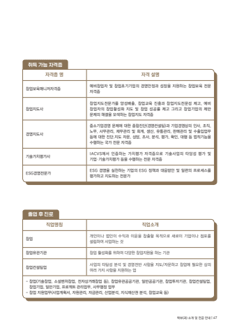 %uc9c1%uc5c5%uba85%uce6d %uc9c1%uc5c5%uc18c%uac1c%ucc3d%uc5c5 %uac1c%uc778%uc774%ub098 %ubc95%uc778%uc774 %uc218%uc775%uacfc %uc774%uc724%uc744 %ucc3d%ucd9c%ud560 %ubaa9%uc801%uc73c%ub85c %uc0c8%ub85c%uc774 %uae30%uc5c5%uc774%ub098 %uc810%ud3ec%ub97c %uc124%ub9bd%ud558%uc5ec %uc0ac%uc5c5%ud558%ub294 %uac83%ucc3d%uc5c5%uc720%uad00%uae30%uad00 %ucc3d%uc5c5 %ud65c%uc131%ud654%ub97c %uc704%ud558%uc5ec %ub2e4%uc591%ud55c %ucc3d%uc5c5%uc9c0%uc6d0%uc744 %ud558%ub294 %uae30%uad00%ucc3d%uc5c5%ucee8%uc124%ud305%uc5c5 %uc0ac%uc5c5%uc758 %ud0c0%ud0d5%uc131 %ubd84%uc11d %ubc0f %uacbd%uc601%uc804%ubc18 %uc0ac%ud56d%uc744 %uc9c0%ub3c4/%uc790%ubb38%ud558%uace0 %ucc3d%uc5c5%uc5d0 %ud544%uc694%ud55c %uc0c1%uc758 %uc5ec%ub7ec %uac00%uc9c0 %uc0ac%ud56d%uc744 %uc9c0%uc6d0%ud558%ub294 %uc5c5- %ucc3d%uc5c5(%uae30%uc220%ucc3d%uc5c5, %uc18c%uc124%ubca4%ucc98%ucc3d%uc5c5, %uc804%uc790%uc0c1%uac70%ub798%ucc3d%uc5c5 %ub4f1), %ucc3d%uc5c5%uc720%uad00%uacf5%uacf5%uae30%uad00, %uc77c%ubc18%uacf5%uacf5%uae30%uad00, %ucc3d%uc5c5%ud22c%uc790%uae30%uad00, %ucc3d%uc5c5%ucee8%uc124%ud305%uc5c5, %ucc3d%uc5c5%uae30%uc5c5, %uc77c%ubc18%uae30%uc5c5, %ud504%ub85c%uc81d%ud2b8 %uad00%ub9ac%uc5c5%ubb34, %uc0ac%ubb34%ud589%uc815 %uc5c5%ubb34- %ucc3d%uc5c5 %uc9c0%uc6d0%uc5c5%ubb34(%uc0ac%uc5c5%uacc4%ud68d%uc11c, %uc790%uc6d0%uad00%ub9ac, %uc790%uae08%uad00%ub9ac, %uc0b0%uc5c5%ubd84%uc11d, %uc9c0%uc2dd%uc7ac%uc0b0%uad8c %ubd84%uc11d, %ucc3d%uc5c5%uad50%uc721 %ub4f1)%uc878%uc5c5 %ud6c4 %uc9c4%ub85c%ucde8%ub4dd %uac00%ub2a5 %uc790%uaca9%uc99d%uc790%uaca9%uc99d %uba85 %uc790%uaca9 %uc124%uba85%ucc3d%uc5c5%ubcf4%uc721%ub9e4%ub2c8%uc800%uc790%uaca9%uc99d %uc608%ube44%ucc3d%uc5c5%uc790 %ubc0f %ucc3d%uc5c5%ucd08%uae30%uae30%uc5c5%uc758 %uacbd%uc601%uc548%uc815%uacfc %uc131%uc7a5%uc744 %uc9c0%uc6d0%ud558%ub294 %ucc3d%uc5c5%ubcf4%uc721 %uc804%ubb38 %uc790%uaca9%uc99d%ucc3d%uc5c5%uc9c0%ub3c4%uc0ac%ucc3d%uc5c5%uc9c0%ub3c4%uc804%ubb38%uac00%ub97c %uc591%uc131%ubc30%ucd9c, %ucc3d%uc5c5%uad50%uc721 %uc9c4%ud765%uacfc %ucc3d%uc5c5%uc9c0%ub3c4%uc804%ubb38%uc131 %uc81c%uace0, %uc608%ube44%ucc3d%uc5c5%uc790%uc758 %ucc3d%uc5c5%ud65c%uc131%ud654 %uc9c0%ub3c4 %ubc0f %ucc3d%uc5c5 %uc131%uacf5%ub960 %uc81c%uace0 %uadf8%ub9ac%uace0 %ucc3d%uc5c5%uae30%uc5c5%uc758 %uc81c%ubc18%ubb38%uc81c%uc758 %ud574%uacb0%uc744 %ubaa8%uc0c9%ud558%ub294 %ucc3d%uc5c5%uc9c0%ub3c4 %uc790%uaca9%uc99d%uacbd%uc601%uc9c0%ub3c4%uc0ac%uc911%uc18c%uae30%uc5c5%uacbd%uc601 %ubb38%uc81c%uc5d0 %ub300%ud55c %uc885%ud569%uc9c4%ub2e8(%uacbd%uc601%ucee8%uc124%ud305)%uacfc %uae30%uc5c5%uacbd%uc601%uc0c1%uc758 %uc778%uc0ac, %uc870%uc9c1, %ub178%ubb34, %uc0ac%ubb34%uad00%ub9ac, %uc7ac%ubb34%uad00%ub9ac %ubc0f %ud68c%uacc4, %uc0dd%uc0b0, %uc720%ud1b5%uad00%ub9ac, %ud310%ub9e4%uad00%ub9ac %ubc0f %uc218%ucd9c%uc785%uc5c5%ubb34 %ub4f1%uc5d0 %ub300%ud55c %uc9c4%ub2e8.%uc9c0%ub3c4 %uc790%ubb38, %uc0c1%ub2f4, %uc870%uc0ac, %ubd84%uc11d, %ud3c9%uac00, %ud655%uc778, %ub300%ud589 %ub4f1 %ubc95%uc801%uae30%ub2a5%uc744 %uc218%ud589%ud558%ub294 %uad6d%uac00 %uc804%ubb38 %uc790%uaca9%uc99d%uae30%uc220%uac00%uce58%ud3c9%uac00%uc0ac IACVS%uc5d0%uc11c %uc778%uc99d%ud558%ub294 %uac00%uce58%ud3c9%uac00 %uc790%uaca9%uc99d%uc73c%ub85c %uae30%uc220%uc0ac%uc5c5%uc758 %ud0c0%ub2f9%uc131 %ud3c9%uac00 %ubc0f %uae30%uc5c5%u00b7%uae30%uc220%uac00%uce58%ud3c9%uac00 %ub4f1%uc744 %uc218%ud589%ud558%ub294 %uc804%ubb38 %uc790%uaca9%uc99dESG%uacbd%uc601%uc804%ubb38%uac00 ESG %uacbd%uc601%uc744 %uc2e4%ucc9c%ud558%ub294 %uae30%uc5c5%uc758 ESG %uc815%ucc45%uacfc %ub300%uc751%ubc29%uc548 %ubc0f %uc77c%ub828%uc758 %ud504%ub85c%uc138%uc2a4%ub97c %ud3c9%uac00%ud558%uace0 %uc9c0%ub3c4%ud558%ub294 %uc804%ubb38%uac00%ud559%ubd80(%uacfc) %uc18c%uac1c %ubc0f %uc804%uacf5 %uc548%ub0b4 | 67