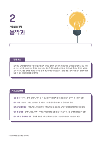 %uc74c%uc545%uacfc2%uc790%uc728%uc804%uacf5%ub300%ud559%uc804%uacf5 %uc2e4%uae30 : %ud53c%uc544%ub178, %uc131%uc545, %uad00%ud604%uc545, %uc791%uace1 %ub4f1 %uac01 %uc804%uacf5 %ubd84%uc57c%uc758 %uc804%ubb38%uc801 %uc2e4%uae30 %ud6c8%ub828%uc744 %ud1b5%ud574 %uc5f0%uc8fc%ub825 %ubc0f %ud45c%ud604%ub825 %ud5a5%uc0c1%uc74c%uc545 %uc774%ub860 : %ud654%uc131%ud559, %ub300%uc704%ubc95, %uc74c%uc545%ubd84%uc11d %ub4f1 %uc774%ub860%uc801 %uae30%ucd08%ub97c %ud1b5%ud574 %uc74c%uc545 %ud574%uc11d %ubc0f %ucc3d%uc791 %ub2a5%ub825 %ud5a5%uc0c1%uc74c%uc545%uc0ac %ubc0f %uc74c%uc545%uac10%uc0c1 : %uc11c%uc591%uc74c%uc545%uc0ac, %ud55c%uad6d%uc74c%uc545%uc0ac, %ud604%ub300%uc74c%uc545 %ub4f1%uc744 %uc911%uc2ec%uc73c%ub85c %uc74c%uc545%uc0ac%uc801 %ubc30%uacbd%uacfc %ubbf8%ud559%uc801 %uad00%uc810%uc744 %ud568%uc591%ud569%uc8fc %ubc0f %uc559%uc0c1%ube14 : %uc2e4%ub0b4%uc545, %ud569%ucc3d, %uc624%ucf00%uc2a4%ud2b8%ub77c %ub4f1 %ub2e4%uc591%ud55c %ud611%uc5c5 %uc911%uc2ec %uc2e4%uc2b5%uc73c%ub85c %uc74c%uc545%uc801 %uc18c%ud1b5 %ub2a5%ub825 %ubc0f %ud611%uc5c5%ub2a5%ub825 %ud5a5%uc0c1%uc74c%uc545%uad50%uc721 %ubc0f %uc74c%uc545%uce58%ub8cc %uae30%ucd08 : %uc74c%uc545%uc744 %ud65c%uc6a9%ud55c %uad50%uc721 %ubc0f %uce58%ub8cc%uc801 %uc811%uadfc%uc5d0 %ub300%ud55c %uc774%ud574%uc640 %uc2e4%uc81c %uc801%uc6a9 %ub2a5%ub825 %ubc30%uc591%uc804%uacf5%uc138%ubd80%uc601%uc5ed%uc804%uacf5%uac1c%uc694%uc74c%uc545%uacfc%ub294 %uc74c%uc545 %uc608%uc220%uc5d0 %ub300%ud55c %uc774%ub860%uc801 %ud0d0%uad6c%uc640 %uc2e4%uae30 %uad50%uc721%uc744 %ud1b5%ud558%uc5ec %ucc3d%uc758%uc801%uc774%uace0 %uc804%ubb38%uc801%uc778 %uc74c%uc545%uc778%uc744 %uc591%uc131%ud558%ub294 %uac83%uc744 %ubaa9%ud45c%ub85c %ud55c%ub2e4. %uace0%uc804 %uc74c%uc545%ubd80%ud130 %ud604%ub300 %uc74c%uc545%uc5d0 %uc774%ub974%uae30%uae4c%uc9c0 %ud3ed%ub113%uc740 %uc74c%uc545 %uc9c0%uc2dd%uc744 %uae30%ubc18%uc73c%ub85c, %uc5f0%uc8fc %ub2a5%ub825 %ud5a5%uc0c1%uacfc %uc74c%uc545%uc801 %ud45c%ud604%ub825, %uc74c%uc545 %ud574%uc11d%ub825, %ud611%uc5c5 %ub2a5%ub825%uc744 %ubc30%uc591%ud55c%ub2e4. %uc774%ub97c %ud1b5%ud574 %uac1c%uc778%uc758 %uc608%uc220%uc801 %uc131%uc7a5%uc744 %ub3c4%ubaa8%ud568%uc740 %ubb3c%ub860, %ubb38%ud654 %uc608%uc220 %ubd84%uc57c %uc804%ubc18%uc5d0%uc11c %ud65c%ub3d9%ud560 %uc218 %uc788%ub294 %uc735%ud569%ud615 %uc778%uc7ac%ub97c %uc591%uc131%ud55c%ub2e4.72 | 2025%ud559%ub144%ub3c4 %uc9c4%ub85c %ucde8%uc5c5 %uac00%uc774%ub4dc%ubd81