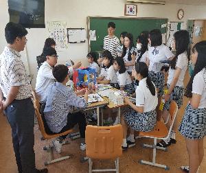 [Event: 2017.06.02] 군산대학교 소프트웨어융합공학과는 지난 6월 2일 전북 전주시 덕진구에 위치한 전주솔내고등학교에서 개최한 학과박람회에 참가하여 전주솔내고 학생들에게 학과를 소개하는 시간을 가졌다. 이 행사에는 온병원 교수, 이석훈 교수, 4학년 안중욱, 4학년 오선영, 4학년 한승민, 3학년 한진주가 참여했다. 전주솔내고 학생들에게 학과 소개를 위하여 간단한 아두이노로 구현한 사물인터넷 작품과 스크래치로 만든 소프트웨어 등을 전시하였으며, 프라임 사업의 소개와 함께 학과의 커리큘럼 등을 설명했다. 행사는 약 3시간동안 진행되었으며 약 44명의 전...
