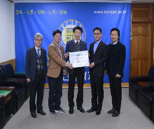 [Event : 2017.03.20] 소프트웨어융합공학과 교수진(온병원, 정동원)이 2017년 3월 20일 군산대학교 본부 총장 접견실에서 나의균 총장에게 대학발전기금 500만원을 전달하였다. 전달식에는 군산대 나의균 총장, 이성룡 기획처장, 소프트웨어융합공학과 온병원 교수 및 정동원 교수 등이 참석하였다. 이날 전달식에서 정동원 교수는 “소프트웨어융합공학과는 군산대학교의 산업연계 교육활성화 선도대학(PRIME) 사업의 성공을 위해 핵심적인 역할을 수행해야 하는 신설학과로, 명품학과로 성장시켜야 할 책임과 임무가 있다고 생각한다”면서 &ld...